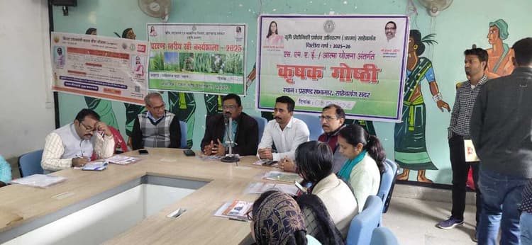 प्रतिनिधि, साहिबगंज. प्रखंड सभागार साहिबगंज सदर में मंगलवार को रबी कर्मशाला सह कृषक गोष्ठी 2025-26 का आयोजन किया गया. इसमें प्रगतिशील कृषकों एवं कृषक मित्रों ने भाग लिया. बैठक की अध्यक्षता अंचलाधिकारी सह प्रखंड विकास पदाधिकारी बासुकी नाथ टुडू ने की.कृषक मित्र मुन्ना रविदास, जितेंद्र यादव और दिलीप पासवान ने भी भाग लिया. कार्यशाला का उद्घाटन बीडीओ एवं आत्मा परियोजना के उपपरियोजना निदेशक ने संयुक्त रूप से किया. प्रखंड विकास पदाधिकारी ने कृषकों को विभिन्न योजनाओं की जानकारी दी. प्रखंड कृषि पदाधिकारी राजीव पांडेय ने किसान क्रेडिट कार्ड और पीएम किसान योजना पर जानकारी दी तथा आवेदन करने का आग्रह किया. आत्मा परियोजना निदेशक ने किसान समृद्धि योजना, ब्लॉकचेन योजना और अन्य योजनाओं की जानकारी दी. जिला कृषि कार्यालय से आत्मा परियोजना के उप परियोजना निदेशक मंटू कुमार, एचडीएफसी ऐग्रो इंश्योरेंस कंपनी के जिला प्रतिनिधि अमित कुमार, प्रखंड समन्वयक सौरभ कुमार, प्रखंड कृषि पदाधिकारी राजीव पांडेय, एटीएम नीरज कुमार एवं अंशु कुमारी, जिला उद्योग केंद्र की प्रखंड समन्वयक रश्मि कुमारी तथा गंगा प्रसाद पूरब पंचायत के मुखिया संतोष गौड़ उपस्थित रहे.