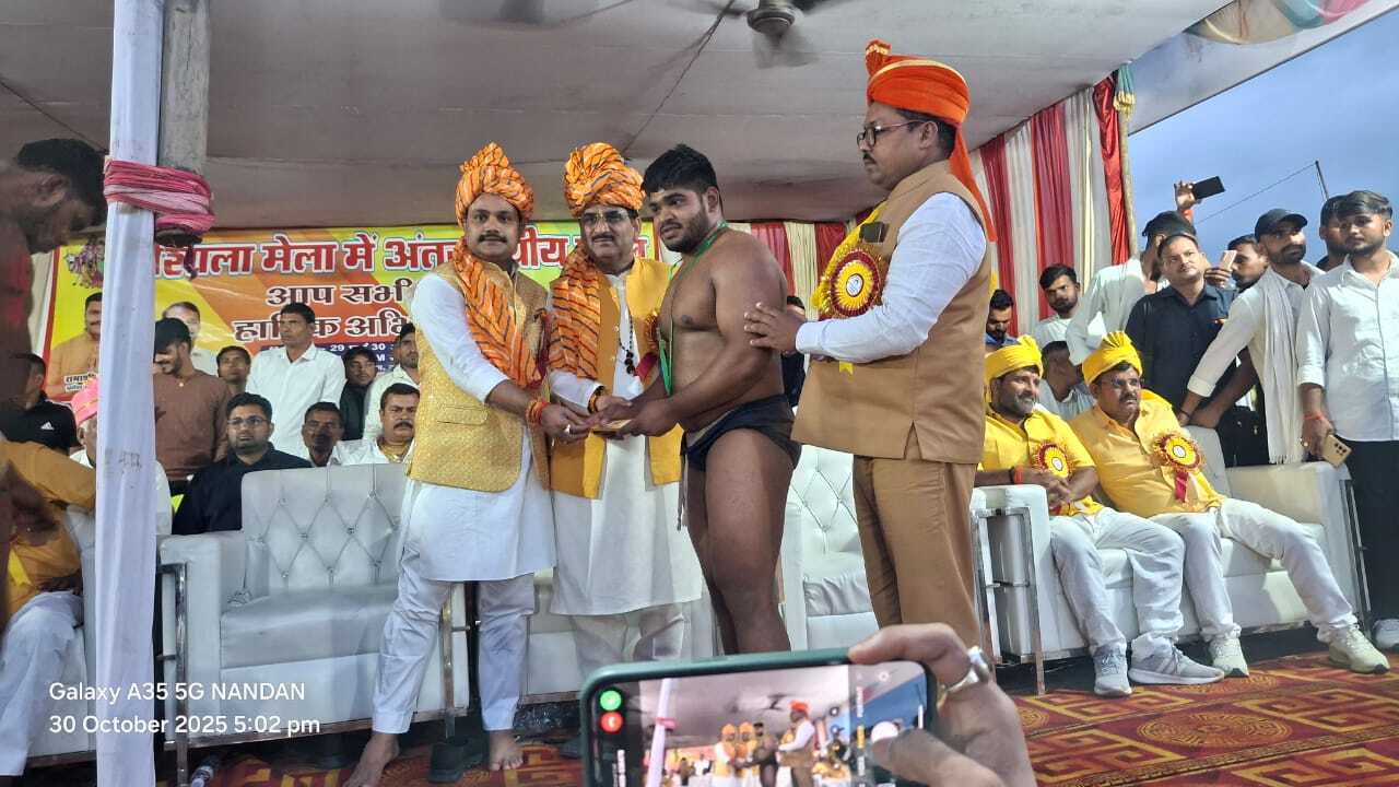 साहिबगंज. झारखंड प्रदेश यादव महासभा की ओर से आयोजित दो दिवसीय कुश्ती प्रतियोगिता के दूसरे दिन गुरुवार को उत्तर प्रदेश के पहलवानों का दबदबा कायम रहा. गौशाला मेला परिसर में हो रहे अंतरराज्यीय कुश्ती प्रतियोगिता का शुभारंभ महासभा के प्रदेश अध्यक्ष बजरंगी प्रसाद यादव, कार्यकारी अध्यक्ष रामाशीष यादव, प्रधान महासचिव इन्द्रजीत यादव को पगडी पहनाकर किया गया. प्रदेश अध्यक्ष बजरंगी प्रसाद यादव पहलवानों का मनोबल बढाते रहे. सीनियर कुश्ती में धमाका पहलवान देवरिया, मोहित पहलवान बनारस, विराट पहलवान बनारस, अमित पहलवान गाजीपुर, दीपक यादव महादेवगंज, गौतम पहलवान भागलपुर, राजन सिंह झारखंड, करण पहलवान कटिहार, पप्पू यादव महादेवगंज ने विजय हासिल की. देर शाम तक पहलवानी जारी था. रेफरी की भूमिका बास्कीनाथ यादव व राजन सिंह ने निभाई. मंच संचालन राजेश यादव ने किया. मौके पर बनारस यादव, दारा सिंह यादव, बास्कीनाथ यादव, करण यादव अशोक यादव, टुनटुन यादव, कृष्णा शर्मा, विवेक यादव, यशराज यादव, नंदन यादव, बुधन यादव, रामचन्द्र यादव आदि मौजूद थे.