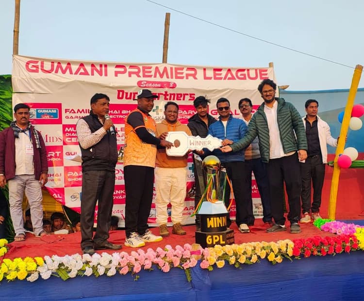 साहिबगंज जिला अंतर्गत मिल्लत उच्च विद्यालय श्रीकुंड मैदान में आयोजित गुमानी प्रीमियर लीग (जीपीएल) सीजन 8 का फाइनल मुकाबला रविवार को कोटालपोखर एवं आगलोई पंचायत की टीम के बीच खेला गया. जिसमें कोटालपोखर की टीम ने 50 रनों से जीत दर्ज की. कोटालपोखर की टीम ने 20 ओवर में 8 विकेट खोकर 213 रनों का विशाल लक्ष्य खड़ा किया. जवाबी पारी में आगलोई की टीम 20 ओवर में 9 विकेट खोकर केवल 163 रन ही बना पायी. इस प्रकार कोटालपोखर की टीम ने 50 रनों से जीत हासिल की. टीम के कैप्टन मृत्युंजय कुमार एवं अन्य खिलाड़ियों जीपीएल आयोजक कमेटी की ओर से आकर्षक कप व रॉयल इनफील्ड बुलेट बाइक दी गयी. वहीं, उप-विजेता टीम के कप्तान को आकर्षक कप व अपाची बाइक दी गयी. कोटालपोखर टीम के कैप्टन मृत्युंजय कुमार ने बताया कि यह जीत कोटालपोखर टीम के सभी खिलाड़ियों की जीत है. जीपीएल सीजन 7 में भी वह फाइनल में पहुंचे थे लेकिन चूक गये थे. इस बार सफलता मिली है. मैन ऑफ द सीरीज से खिलाड़ी अमित कुमार को नवाजा गया. कार्यक्रम के सफल आयोजन में जीपीएल के अफीफ अमसल, रियाज राजा, मुखिया मो काबिल सहित अन्य मौजूद थे.