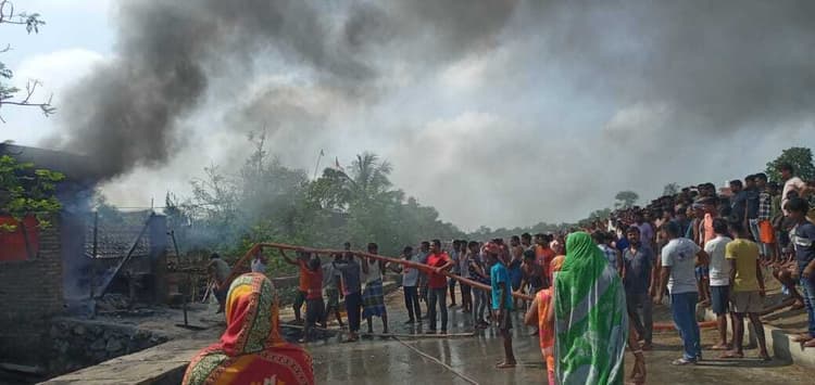 राजमहल.प्रखंड क्षेत्र के जामनगर गांव में गुरुवार को एक किराना दुकान में आग लग गया, जिससे दुकान में रखा लाखों का सामान जल कर राख हो गया. जानकारी के अनुसार गांव की दुकानदार फलकुमार साहा प्रतिदिन की तरह सुबह दुकान का शटर खोलकर पूजा पाठ करके दुकान के बाहर खड़े थे. तभी अचानक दुकान के भीतर से आग का चिंगारी निकलने लगी. इसके बाद फूल कुमार साहा ने आग बुझाने का काफी प्रयास किया. कुछ ही देर में दुकान में रखे पेट्रोल की बोतल में आग लग गया, जिससे आग और भी तेज हो गया. घटना के बारे में सुनते ही ग्रामीण इकट्ठा हो गये और बगल के पोखर में पंप सेट लगाकर आग पर काबू पाने के मशक्कत के बाद काबू पाया गया. घटना की सूचना मिलते ही मौके पर अग्निशमन वाहन भी पहुंचकर आग पर काबू पाने का कार्य किया.