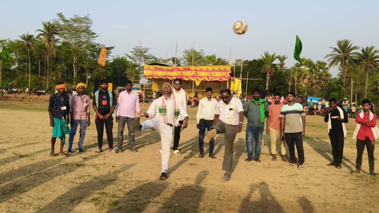 बरहेट. प्रखंड क्षेत्र की हिरणपुर पंचायत के सरकंडा फुटबॉल मैदान में तीन दिवसीय फुटबॉल टूनामेंट का फाइनल मुकाबला देर शाम शुक्रवार को खेला गया. तीन दिवसीय फाइनल मुकाबले के मुख्य अतिथि झामुमो प्रखंड अध्यक्ष सह प्रमुख बर्नार्ड मरांडी, झामुमो नेता छवि हेम्ब्रम, उप प्रमुख रूपक साह, उपाध्यक्ष लखीराम हेम्ब्रम शामिल हुए. प्रमुख बर्नार्ड मरांडी ने खेल का शुभारंभ किया. झामुमो प्रखंड अध्यक्ष बर्नार्ड मरांडी ने कहा कि खेल में हार जीत लगी रहती है, हारने वाले खिलाड़ियों को बेहतर करने का मौका मिलता है. फाइनल मुकाबला महुआटांड़ व भागाबांध के बीच खेला जिसमें महुआटांड़ फुटबॉल टीम ने पेनाल्टी शूटआउट में भागाबांध फुटबॉल टीम को एक गोल दागकर विजेता बना. प्रखंड अध्यक्ष बर्नार्ड मरांडी ने विजेता टीम को दस हजार रुपये, उपविजेता टीम को झामुमो नेता छवि हेंब्रम उपाध्यक्ष लखीराम हेंब्रम, उप प्रमुख रूपक साह ने पुरस्कृत कर सम्मानित किया. मौके पर समदा सोरेन, होपना सोरेन, मसीह हांसदा, राकेश बेसरा सहित अन्य मौजूद थे.