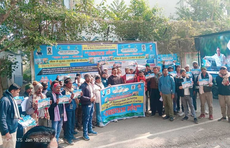राष्ट्रीय सड़क सुरक्षा माह के 10वें दिन शनिवार को साहिबगंज जिले में सड़क सुरक्षा जागरुकता कार्यक्रम के तहत नेक नागरिक (गुड समारिटन) योजना एवं हिट एंड रन मुआवजा योजना से संबंधित सहायता हेल्प कैंप का आयोजन किया गया. इसका मुख्य उद्देश्य सड़क दुर्घटनाओं में घायल व्यक्तियों को त्वरित सहायता उपलब्ध कराने के लिए आम नागरिकों को जागरूक करना तथा सरकार द्वारा संचालित योजनाओं का लाभ दिलाना रहा. इसका नेतृत्व जिला परिवहन पदाधिकारी मिथिलेश कुमार चौधरी ने किया. उन्होंने गुड समारिटन (नेक नागरिक) योजना की विस्तृत जानकारी देते हुए बताया कि सड़क दुर्घटना में घायल व्यक्ति को बिना किसी भय या संकोच के गोल्डन आवर, अर्थात दुर्घटना के एक घंटे के भीतर सहायता पहुंचाने वाले व्यक्ति को गुड समारिटन कहा जाता है. ऐसे नेक नागरिकों को झारखंड गुड समारिटन पॉलिसी–2026 के तहत राज्य सरकार द्वारा 25,000 रुपये की पुरस्कार राशि व प्रशस्ति-पत्र प्रदान किया जाता है. जिले के प्रमुख स्थलों एवं सरकारी कार्यालयों में लगाये गये हेल्प कैंप के माध्यम से गुड समारिटन एवं हिट एंड रन योजनाओं से जुड़े लंबित मामलों का निष्पादन किया गया. आम नागरिकों को इन योजनाओं की प्रक्रिया, पात्रता एवं लाभों की जानकारी दी गयी. मोटर वाहन निरीक्षक कुमार उत्कर्ष ने स्पष्ट किया कि घायल की सहायता करने वाले व्यक्ति को किसी भी प्रकार की पुलिस या कानूनी परेशानी का सामना नहीं करना पड़ेगा, बल्कि उन्हें सम्मानित किया जायेगा. कार्यक्रम के दौरान सड़क सुरक्षा नियमों के पालन, हेलमेट व सीट बेल्ट के अनिवार्य उपयोग तथा यातायात नियमों के प्रति सजग रहने की अपील की गयी. इस अवसर पर जागरुकता पंपलेट, बुकलेट एवं हैंडबिल का वितरण किया गया. कार्यक्रम में मोटर वाहन निरीक्षक अभिषेक मुंडा, जिला सड़क सुरक्षा प्रबंधक नीरज कुमार साह, रोड इंजीनियर एनालिस्ट अनुज पराशर, आइटी सहायक राजहंस, सड़क सुरक्षा योद्धा ओम प्रकाश पंडित आदि मौजूद थे.