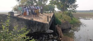 बेगमगंज मोड़ का भुतहा पुल धंसा, देर रात भारी वाहन गुजरने से हुआ हादसा, आवागमन ठप