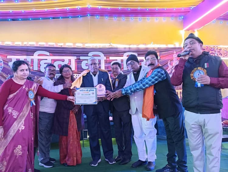 साहिबगंज साहित्य की दुनिया राष्ट्रीय साहित्यिक मंच का दो दिवसीय राष्ट्रीय कवि सम्मेलन रविवार को संपन्न हुआ. अंतिम दिन तीन सत्रों में विभिन्न राज्यों के कवियों ने श्रृंगार रस, वीर रस और हास्य रस की प्रस्तुतियां दीं. मंच की ओर से आए कवियों को मेमेंटो, अंग वस्त्र और सर्टिफिकेट देकर सम्मानित किया गया. जिला में उत्कृष्ट कार्य के लिए जितेंद्र कुमार हजारी और डॉ सूर्यानंद प्रसाद को विशेष सम्मान दिया गया. ऑनलाइन प्रतियोगिता के विजेताओं को बिहारी लाल सम्मान प्रदान किया गया जिसमें बिंदु श्रीवास्तव, गौरी तिवारी, शिल्पा पीहू, ज्योति सिन्हा और रंजना लता शामिल रहे. सुभद्रा कुमारी चौहान सम्मान मोहिनी राजभर, अभय कुमार, अमन कुमार, मिताली श्रीवास्तव वर्मा को मिला. पंडित रामचंद्र शुक्ल सम्मान डॉ पूर्णिमा, आशा झा और नंद किशोर साहू को दिया गया. साहित्य श्री सम्मान अभय पाण्डेय, विनीता धाकड़ और अन्य को मिला. कर्मवीर सम्मान रीमा सिंह, गोपाल चौखानी, डॉ रानी झा सहित कई लोगों को दिया गया. समापन भाषण मंच के अध्यक्ष ने किया. विशेष सम्मान : जितेंद्र कुमार लाल, डॉ सूर्यानंद प्रसाद. ऑनलाइन प्रतियोगिता विजेता बिहारी लाल सम्मान – बिंदु श्रीवास्तव (सिमडेगा), गौरी तिवारी (भागलपुर), शिल्पा पीहू (साहिबगंज), ज्योति सिन्हा (वैशाली), रंजना लता (समस्तीपुर) सुभद्रा कुमारी चौहान सम्मान: मोहिनी राजभर (अयोध्या, उत्तर प्रदेश), अभय कुमार (साहिबगंज) , अमन कुमार होली (साहिबगंज), मिताली श्रीवास्तव वर्मा (भिलाई) पंडित रामचंद्र शुक्ल सम्मान: दिवंगत डॉ पूर्णिमा (भागलपुर), आशा झा सखी (भोपाल), नंद किशोर साहू (दरभंगा) साहित्य श्री सम्मान: अभय पाण्डेय वशिष्ठ (नागपुर), विनीता धाकड़ (रायसेन, मध्य प्रदेश), अनिरुद्ध प्रभाष (साहिबगंज), विजय भारती, सुनीता झा (बेगूसराय), नवीन चंद्र ठाकुर (दुमका), संगीता गुप्ता (पटना, बिहार), आस्था नीर (अयोध्या, यूपी) प्रो. सुबोध कुमार झा (साहिबगंज), अनंग मोहन मुखर्जी (रांची), अंकुर कुमार (साहिबगंज), कुमार धनंजय सुमन (बिहपुर), – पूजा कुमारी (जेएनवी साहिबगंज), कोमल कुमारी (पोखरिया विद्यालय) आदि. नृत्य ग्रुप: पायल कुमारी, भावना कुमारी, दीप्ति भारती, नैंसी भारती, कर्मवीर सम्मान: रीमा सिंह, गोपाल चौखानी, डॉ रानी झा, भगवती रंजन पाण्डेय आदि.