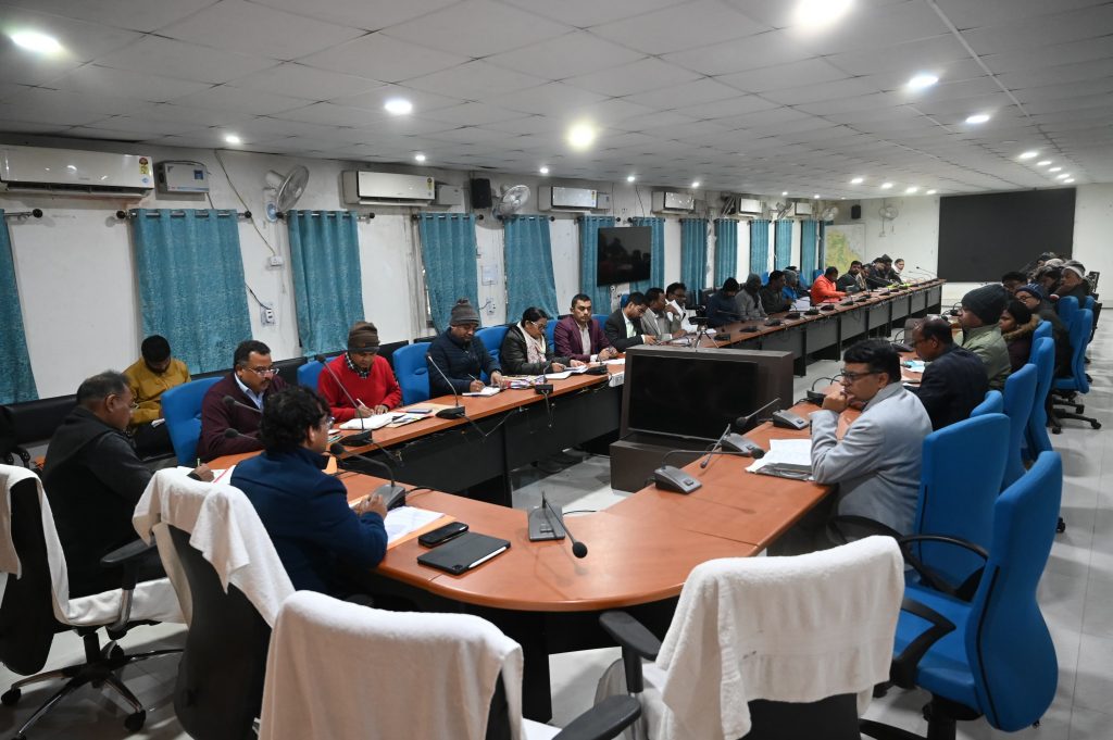 साहिबगंज. चौकीदार व एनएचएम स्वास्थ्य विभाग की नियुक्ति को लेकर जिला स्तरीय प्रतियोगिता परीक्षा 19 जनवरी 2025 रविवार को प्रथम पाली में जिला मुख्यालय के 18 केंद्रों पर होगी. पहली पाली में एनएचएम के तहत संत जेवियर्स स्कूल (हिंदी) में एक ही केंद्र बनाया गया है. जहां सुबह 11 बजे से 1 बजे तक सामान्य ज्ञान व सामान्य विज्ञान की परीक्षा होगी. जबकि 17 केंद्रों पर चौकीदार बहाली की परीक्षा प्रथम पाली में सुबह 11 से 12:30 तक सामान्य ज्ञान व भाषा ज्ञान की परीक्षा कडी सुरक्षा व्यवस्था के बीच होगी. डीसी हेमंत सती ने बताया कि 18 केन्द्र में लगभग सात हजार परीक्षार्थी परीक्षा देंगे. परीक्षा के लिये केन्द्र कोड 10 एनएचएम के लिये 11 से 27 तक चौकीदार के लिये रखा गया है. सभी केंद्रों के लिए पदाधिकारी-दंडाधिकारी व पुलिस बल प्रतिनियुक्त साहिबगंज. सभी केंद्रों पर एक पुलिस पदाधिकारी, चार पुलिस सशस्त्र बल व दो महिला बल के अलावे दंडाधिकारी की प्रतिनियुक्ति की गयी है. साथ ही सभी केंद्र के लिए गश्ती दल दंडाधिकारी की प्रतिनियुक्ति की गयी है. बताया गया कि डीएसओ झुन्नू कुमार मिश्रा, जिला भू-अर्जन पदाधिकारी छूटेश्वर कुमार दास, डीटीओ मिथिलेश चौधरी, डीपीआरएम अनिल कुमार की नियुक्ति की गयी है. एसडीओ व एसडीपीओ को सभी केंद्रों पर शांति व विधि-व्यवस्था की जिम्मेवारी दी गयी है. नियंत्रण कक्ष का नंबर 9631155933, 9006963963 उपलब्ध रहेगा. वरीय प्रभार में एसी गौतम भगत व सहयोगी पदाधिकारी में श्रम अधीक्षक धीरेंद्र नाथ महतो रहेंगे. परीक्षा केन्द्रों पर बनेगा हेल्प डेस्क साहिबगंज – सभी 18 केन्द्रों पर हेल्पडेस्क का गठन किया गया है. कोई भी परीक्षार्थी मोबाइल इलेक्ट्रोनिक समान अंदर लेकर नहीं ले जा सकते है. नकल करने या प्रश्न-पत्र सह उत्तर पुस्तिका लेकर भाग जाने पर प्राथिक दर्ज कानूनी कार्रवाई की जायेगी. परीक्षार्थी एनआईसी के वेवसाईट से डाउनलोड करे एडमिट कार्ड साहिबगंज – चौकीदार व एनएचएम स्वास्थ्य विभाग की नियुक्ति को लेकर एनआईसी के वेवसाईट में लाेड कर दिया गया है डाउनलोड कर एडमिट कार्ड निकाल सकते है. फोटो चिपकाकर परीक्षा केन्द्र में आयेगे. डीसी हेमंत सती की अध्यक्षता में चौकीदार परीक्षा की तैयारियां पर समीक्षा बैठक आयोजित फोटो नं 16 एसबीजी 52 है कैप्सन – गुरूवार को बैठक करते डीसी संवाददाता साहिबगंज – 19 जनवरी 2025 को आयोजित होने वाली जिला चौकीदार परीक्षा को लेकर समाहरणालय सभागार में डीसी हेमंत सती की अध्यक्षता में एक अहम समीक्षा बैठक संपन्न हुई. बैठक में परीक्षा को निष्पक्ष, पारदर्शी और व्यवस्थित रूप से संपन्न कराने के लिए व्यापक रणनीति तैयार की गई. डीसी ने विभिन्न विभागों के पदाधिकारी को उनके दायित्वों की जानकारी दी और सभी को निर्देश दिया कि परीक्षा क