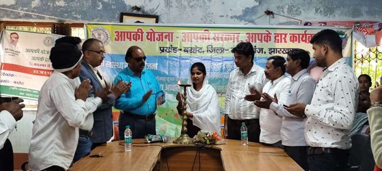 बरहेट. प्रखंड क्षेत्र अंतर्गत तलबडिया, सिमलढाब एवं हिरणपुर पंचायत भवन में शनिवार को ‘आपकी योजना, आपकी सरकार, आपके द्वार’ कार्यक्रम का शुभारंभ जिप अध्यक्ष मोनिका किस्कू, झामुमो प्रखंड अध्यक्ष सह प्रमुख बर्नार्ड मरांडी, प्रो नजरूल इस्लाम, बीडीओ अंशु कुमार पांडेय आदि ने संयुक्त रूप से दीप प्रज्वलित कर किया. इस दौरान इन पंचायतों के विभिन्न गांवों से पहुंचे लोगों में से कई ने योजनाओं का लाभ लेने के लिये स्टॉल में आवेदन किया, तो वहीं कई ने अपनी समस्याएं पदाधिकारियों को सुनायी. इसके अलावे लाभुकों में परिसंपत्तियों का भी वितरण किया गया. मौके पर झामुमो जिला संगठन सचिव छवि हेंब्रम, राजाराम मरांडी, मो अली, जिप सदस्य जेठा मुर्मू, लड्डू भगत सहित अन्य मौजूद थे.