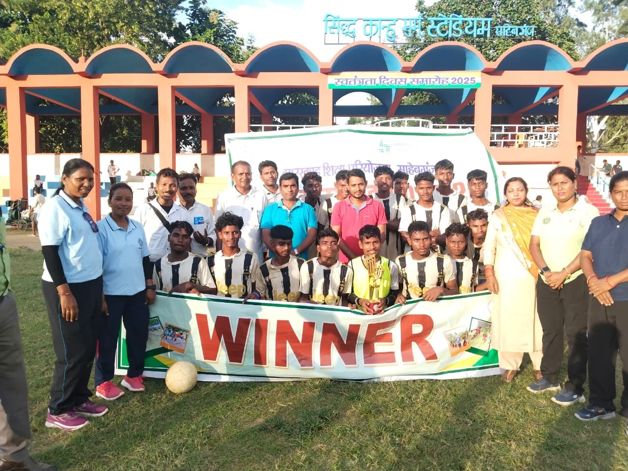 साहिबगंज. झारखंड शिक्षा परियोजना के तत्वावधान में बुधवार को सिदो-कान्हू मुर्मू स्टेडियम, साहिबगंज में आयोजित खेलो झारखंड अंडर-19 फुटबॉल प्रतियोगिता में बोरियो की बालक एवं बालिका टीमों ने बेहतरीन प्रदर्शन करते हुए विजयी पताका लहराया. कस्तूरबा गांधी आवासीय विद्यालय, बोरियो की बालिका टीम ने शानदार खेल का प्रदर्शन करते हुए बरहेट की टीम को पराजित कर राज्य स्तरीय प्रतियोगिता के लिए क्वालीफाई किया. बालिकाओं के जुझारू खेल ने दर्शकों का मन मोह लिया. वहीं, प्लस टू आरके हाई स्कूल, बोरियो के बालकों ने भी दमदार खेल दिखाया. पहले राउंड में साहिबगंज को 2-1 से हराया, जबकि फाइनल मुकाबले में मंडरो की टीम को 3-1 से शिकस्त देकर विजेता ट्रॉफी अपने नाम की. खिलाड़ियों को शिक्षा परियोजना की एपीओ शबनम तबस्सुम ने ट्रॉफी, सर्टिफिकेट एवं मेडल देकर सम्मानित किया और राज्य स्तर पर उत्कृष्ट प्रदर्शन के लिए शुभकामनाएं दीं. उन्होंने कहा कि सभी प्रतिभागी अपने जोश को बनाये रखें और राज्य में साहिबगंज का नाम रोशन करें. कार्यक्रम को सफल बनाने में शारीरिक शिक्षक वीरेंद्र कुमार, बमबम कुमार, शंभू राय, सत्येंद्र शाह, प्रियंका कुमारी, दीपक मंडल, राकेश राका, ज्योति पन्ना, लूसी कुमारी, विवेक कुमार, दिवाकर सिंह, बीपीओ एहसान अहमद समेत दर्जनों शिक्षकों एवं अधिकारियों की अहम भूमिका रही.