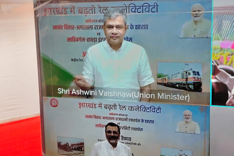 दुर्गा पूजा के दौरान रेलवे ने संताल परगना को बड़ी सौगात दी है. रेल मंत्री अश्वनी वैष्णव और गोड्डा सांसद निशिकांत दुबे ने अगरतला-आनंद विहार तेजस राजधानी एक्सप्रेस और साहिबगंज-हावड़ा इंटरसिटी एक्सप्रेस को हरी झंडी दिखाकर रवाना किया.