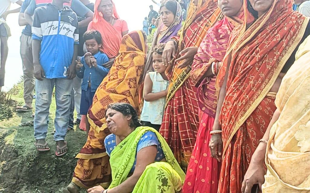 सूचना मिलते ही गंगा नदी के तट पर जुटी ग्रामीणों की भीड़