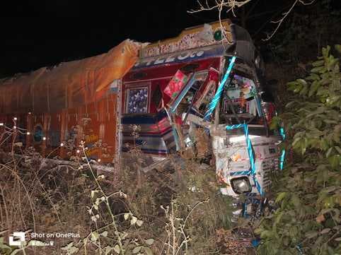 तेज रफ्तार ट्रक अनियंत्रित होकर गड्ढे में जा गिरा.