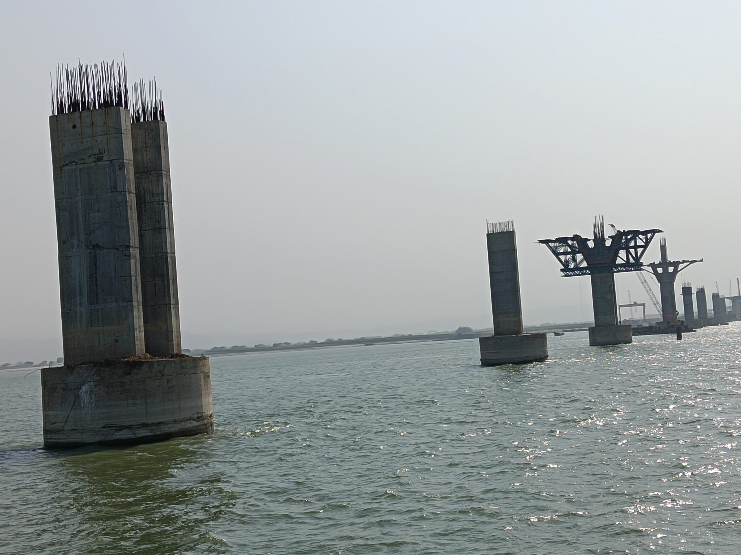 साहिबगंज. साहिबगंज-मनिहारी गंगा पुल का निर्माण कार्य तीव्र गति से जारी है. यह पुल साहिबगंज वासियों के लिए वर्षों पुराना सपना है, जो अब साकार होने के काफी निकट है. मुख्य गंगा में बनने वाले छह किलोमीटर पुल के लिए पिलर के ऊपर गार्डर सेगमेंट रखने सहित अन्य कार्य चल रहा है. गंगा पुल निर्माण कार्य कर रही दिलीप बिल्डकॉन कंपनी ने साहिबगंज के अम्बाडीहा जीरो माइल तक सड़क कालीकरण का कार्य कर दिया है. वहीं साहिबगंज और मनिहारी दोनों ओर पिलर के ऊपर का कार्य किया जा रहा है. पिलर के ऊपर लॉन्चर सेगमेंट, केबल तार लगाने सहित अन्य कार्य कंपनी की ओर से तीन चरणों में किया जा रहा है. इधर निर्माण कार्य की साप्ताहिक व मासिक मॉनिटरिंग पीएमओ से की जा रही है. इसको लेकर मैटेरियल से लेकर क्वालिटी लैब टेस्टिंग हर तरह की जांच रिपोर्ट प्रोग्रेस रिपोर्ट के साथ कंपनी द्वारा संबंधित विभाग को नियमित रूप से भेजा जा रहा है. वहीं निर्माण सामग्री की प्रॉपर चेकिंग डीबीएल कंपनी के लैब में टेक्नीशियन की टीम के द्वारा नियमित रूप से कर इसकी रिपोर्ट भी समय-समय पर भेजी जा रही है. दरअसल साहिबगंज-मनिहारी के बीच लगभग दो हजार करोड़ की लागत से गंगा पुल का निर्माण किया जा रहा है. गंगा पुल के दोनों और साहिबगंज मनिहारी में तकरीबन 500 करोड़ रुपये की लागत से इसके एप्रोच पथ का निर्माण भी किया जा रहा है. हालांकि पूर्व में वर्ष 2024 तक गंगा पुल का निर्माण कार्य को पूर्ण कर लिया जाना था. लेकिन बीच में आया है यास तूफान सहित अन्य परेशानी से निर्माण कार्य प्रभावित हुआ है. निर्माण कार्य में लगी कंपनी के पदाधिकारियों के अनुसार योजना को पूर्ण करने के लिए समय अवधि का विस्तार किया गया है. अब गंगा पुल का निर्माण कार्य मार्च 2027 तक पूर्ण किया जाना है.
