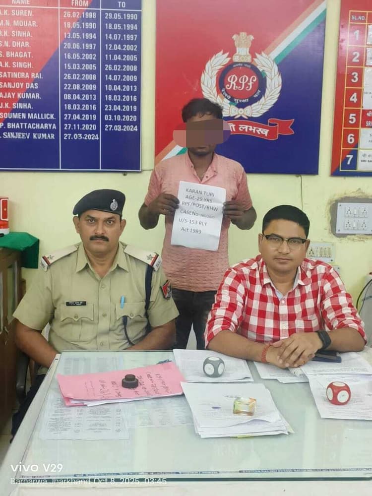 बरहरवा. मालदा रेल मंडल अंतर्गत साहिबगंज-बरहरवा रेलखंड पर तेजस एक्सप्रेस (20502) पर पथराव करने वाले युवक को आरपीएफ ने गिरफ्तार कर लिया. इंस्पेक्टर संजीव कुमार ने बताया कि सूचना के आधार पर एएसआइ जलेश्वर दुबे ने अन्य जवानों के साथ विद्युत पोल पर पत्थर फेंक रहे बरहेट थाना क्षेत्र के खैरवा गांव निवासी करण तुरी (29) पिता शिवनाथ तुरी को रेलवे अधिनियम की धारा 179 (2) के तहत हिरासत में ले लिया. जिससे पूछताछ के क्रम में उसने स्वीकारा कि दो सप्ताह पूर्व (26 सितंबर को) वह अपने परिवार से झगड़ा करके तीनपहाड़ स्टेशन के किनारे शराब पीकर विद्युत पोल पर पत्थर फेंक रहा था. इस बीच उक्त रेल मार्ग से गुजर रही ट्रेन संख्या 20502 डाउन तेजस एक्सप्रेस पर भी उसने पथराव किया, जिससे एसी कोच का शीशा टूट गया. उस समय पुलिस को आता देख वह फरार हो गया था. मामले में आरपीएफ द्वारा रेलवे अधिनियम की धारा 153 के तहत दर्ज कांड संख्या 785/2025 के आधार पर युवक करण तुरी को रेलवे दंडाधिकारी के न्यायालय में प्रस्तुत किया गया.