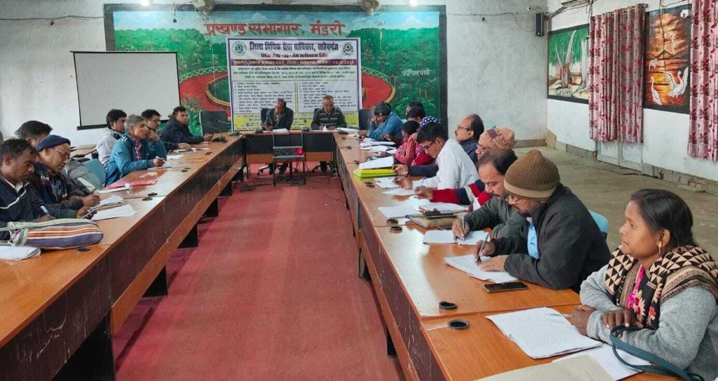 मंडरो प्रखंड सभागार में मंगलवार को प्रखंड के सभी पंचायत कर्मियों के साथ बीडीओ मेघनाथ उरांव की अध्यक्षता में प्रखंड स्तरीय मनरेगा एवं अन्य सभी विकासशील योजनाओं की समीक्षा की गयी. मीक्षा के दौरान 15वें वित्त योजनाओं के लिए सभी पंचायत सचिवों को योजनाओं के संचालन में प्रगति लाने हेतु निर्देश दिया गया. साथ ही, मुख्यमंत्री मंईयां सम्मान योजना के तहत उन लाभुकों को चिन्हित करते हुए राशि वापसी का निर्देश दिया गया, जो इस योजना की पात्रता नहीं रखते हैं. मनरेगा योजना की समीक्षा के दौरान प्रखंड कार्यक्रम पदाधिकारी अभिषेक आनंद ने सभी रोजगार सेवकों को जॉब कार्ड वेरिफिकेशन, 100 डेज, नई योजनाओं का अभिलेख खोलने तथा वित्तीय वर्ष 2021-22 या उससे पूर्व की योजनाओं को शीघ्र बंद करने का निर्देश दिया. बिरसा हरित ग्राम योजना एवं बिरसा सिंचाई कूप योजना का स्थल वेरिफिकेशन कर प्रगति लाने के लिए सभी कनीय अभियंता एवं रोजगार सेवकों को निर्देशित किया गया. वहीं, आवास योजना की समीक्षा के दौरान बीडीओ ने लंबित आवासों को शीघ्र पूरा करने का निर्देश दिया. मौके पर बीपीओ अभिषेक आनंद, कनीय अभियंता नेहाल आलम, सौरभ कुमार,राजकुमार झा, जनसेवक रमेश कुमार, बिजय मंडल, संतोष कुमार के अलावा पंचायत सचिव और रोजगार सेवक उपस्थित थे.