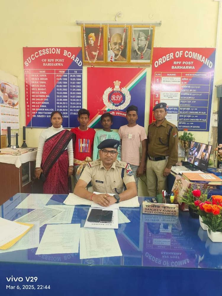 बरहरवा. मालदा रेल मंडल अंतर्गत बरहरवा स्टेशन में आरपीएफ ने गुप्त सूचना पर तीन नाबालिग बच्चों के साथ एक मानव तस्कर को गिरफ्तार किया है. आरपीएफ इंस्पेक्टर संजीव कुमार के नेतृत्व में टीम ने गुरुवार की रात छापेमारी अभियान चलाया. प्लेटफाॅर्म संख्या दो के फुटओवर ब्रिज के पास एक वयस्क व्यक्ति के साथ संदेहास्पद स्थिति में तीन नाबालिगों को देखा गया. पूछताछ करने पर बताया कि उन्हें बरहरवा से पुणे जंक्शन ले जाया जा रहा है. इसके साथ ही नाबालिगों को ले जा रहे युवक अजीत रविदास को भी हिरासत में ले लिया गया. अजीत रविदास ने बताया कि इन बच्चों को पुणे में कंपनी में मजदूरी करने के लिए भेजना था. ये सभी बरहरवा रेलवे स्टेशन से वनांचल एक्सप्रेस ट्रेन से पुणे भेजना था. उसने यह भी बताया कि इस काम के लिए कंपनी से उसे 10 हजार रुपये प्रतिमाह कमीशन मिलता है. तीनों नाबालिग बच्चों को बाल संरक्षण मंथन संस्था साहिबगंज के प्रतिनिधि अपराध मंडल को सौंप दिया गया. बरहरवा जीआरपी थाना में आरपीएफ के एएसआइ अजय कुमार हांसदा के लिखित शिकायत पर मानव तस्करी के मामले में प्राथमिकी दर्ज कर अजीत रविदास को न्यायिक हिरासत में जेल भेज दिया गया. इस दौरान छापेमारी टीम में एएसआई अजय कुमार हांसदा, हेड कांस्टेबल नीलकमल बरूई, कांस्टेबल अनिल कुमार साह के अलावे बाल संरक्षण मंथन संस्था के प्रतिनिधि आराधना मंडल शामिल रहे.