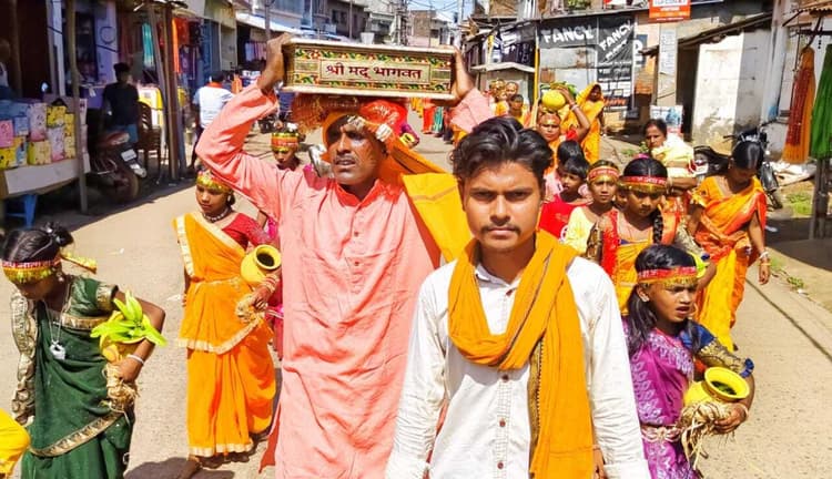 बोरियो. हाईस्कूल मैदान में सात दिवसीय श्रीमदभागवत कथा को लेकर बुधवार को कलश शोभा यात्रा निकाली गयी. कलश यात्रा हाई स्कूल मैदान से निकल कर बोरियो ग्वाला मोड़, मेन रोड होते हुए पूरे बाजार का भ्रमण करते मोरंग नदी तक पहुंची. शोभा कलश यात्रा में सैकड़ों महिलाएं शामिल हुईं. मोरंग नदी में वैदिक मंत्रोच्चारण के साथ कलश में जल भरकर पुनः वापस हाईस्कूल मैदान तक पहुंचीं. कलश यात्रा गाजे-बाजे के साथ निकली. इस दौरान जयकारे से बोरियो बाजार में भक्तिमय माहौल रहा. कलश यात्रा के बाद प्लस टू हाईस्कूल के मैदान में सात दिन 29 मई से 4 जून तक भागवत कथा का आयोजन होगा. कथावाचक वृंदावन के गोपाल भाई ओझा भागवत कथा में शामिल हुए हैं. इस मौके पर नंदेश्वर प्रसाद, राजेश यादव, मोहन रक्षित, सुनील, मंगल, राजीव सहित सैकड़ों लोग मौजूद थे.