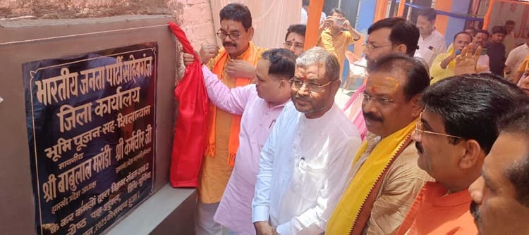 साहिबगंज.पूर्व मुख्यमंत्री व भाजपा के प्रदेश अध्यक्ष बाबूलाल मरांडी ने गुरुवार को सुबह 11 बजे पुरानी साहिबगंज स्थित पार्टी कार्यालय के प्रांगण में भूमि पूजन कर कार्य का शिलान्यास नारियल फाेड़कर किया. चार ईंट जोड़कर व गिट्टी से ढलाई कर शुभारंभ किया गया. संगठन मंत्री कर्मवीर सिंह, प्रदेश कोषाध्यक्ष दीपक बंका, पूर्व विधायक अनंत कुमार ओझा, बिरंची नारायण, लोबिन हेंब्रम, प्रदेश उपाध्यक्ष बालमुकुंद सहाय, प्रदेश मंत्री दुर्गा मरांडी, भाजपा किसान मोर्चा के राष्ट्रीय मंत्री बजरंगी प्रसाद यादव, जिलाध्यक्ष उज्ज्वल मंडल ने पत्नी के साथ पूजा कर नारियल फोड़ा. प्रदेश कोषाध्यक्ष दीपक बंका ने कहा कि कार्यकर्ता का अपना घर तो होता ही है, यह कार्यालय दूसरा घर होगा. उन्होंने कहा कि चारमंजिला भवन बनेगा. एजेंसी द्वारा निर्माण कार्य शुरू होंगे, जो दो साल के अंदर बनकर तैयार होगा. नीचे तल्ले में सभागार, दूसरे तल्ले में पार्टी जिलाध्यक्ष व अन्य मोर्चा के अध्यक्ष का कार्यालय व तीसरी मंजिल पर ठहराव की व्यवस्था की जा रही है. उन्होंने कहा कि अभी तक पूरे राज्य में 18 कार्यालय बन गये हैं. आज ही गोड्डा कार्यालय का उदघाटन किया गया. सात जून को कोडरमा में कार्यालय का भूमि पूजन होगा. रांची, हजारीबाग, जमशेदपुर में भी भवन बनेगा. कार्यक्रम में बजरंगी यादव, अनंत ओझा, लोबिन हेम्ब्रम ने आरती की. मौके पर मंटा मंडल, रामानंद साह, कमल भगत, कृष्णा महतो, ओम भरतिया, सत्यप्रकाश सिन्हा, दुर्गा मरांडी, रंधीर सिंह, प्रदीप अग्रवाल, धर्मेंद्र कुमार, रामानंद साह, दिनेश पांडेय, संजय पटेल, गौतम भगत, पंकज चौधरी, विनोद चौधरी, कृष्णा साह सहित जिले के सभी प्रखंड के पदाधिकारी व भाजपा के वरिष्ठ पदाधिकारी, जनप्रतिनिधि, विभिन्न प्रकोष्ठों के सदस्य एवं बड़ी संख्या में कार्यकर्ता उपस्थित थे.