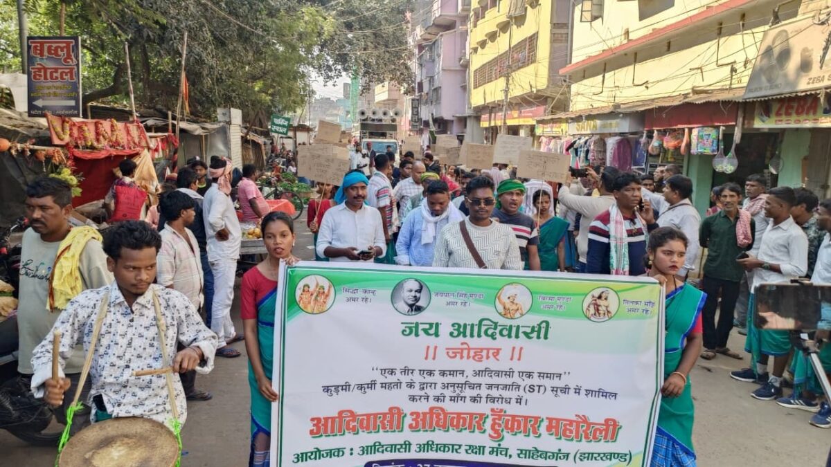 कुर्मी समाज को आदिवासी एसटी सूची में शामिल करने के विरोध में गुरुवार को साहिबगंज में आदिवासी अधिकार रक्षा मंच ने हुंकार महारैली निकाली गयी.