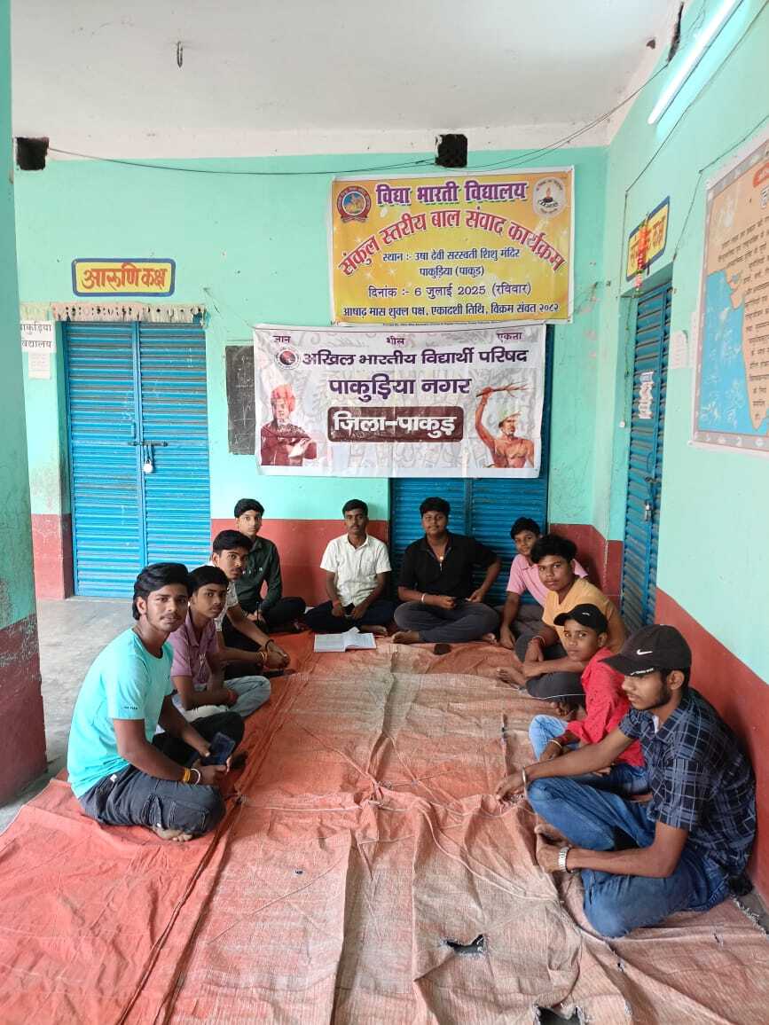 प्रतिनिधि, पाकुड़िया. अखिल भारतीय विद्यार्थी परिषद, पाकुड़िया नगर इकाई की बैठक गुरुवार को हुई. बैठक में संगठन के विस्तार और सदस्यता अभियान को लेकर विस्तृत चर्चा की गई. निर्णय लिया गया कि अभियान शीघ्र ही प्रारंभ किया जाएगा, जिससे संगठन की पहुंच हर विद्यालय तक सुनिश्चित हो सके. बैठक में वक्ताओं ने कहा कि विद्यार्थी परिषद एक राष्ट्रवादी संगठन है, जो विद्यार्थियों के हित में निस्वार्थ भाव से कार्य करता है. परिषद समाज की विभिन्न परिस्थितियों में विद्यार्थियों को साहसपूर्वक आगे बढ़ने और समस्याओं के समाधान की दिशा में प्रेरित करता है. बैठक में नगर मंत्री रोकी कुमार पाल, विनीत जयसवाल, नितिन कुमार पाल, सुखदेव कुमार, आयुष पाल, राज कुमार सरकार, निखिल राज, आयुष राज, आदित्य करण, देव भगत, कुनाल वर्मा, अमित वर्मा, ओमकार साहू सहित अन्य थे.