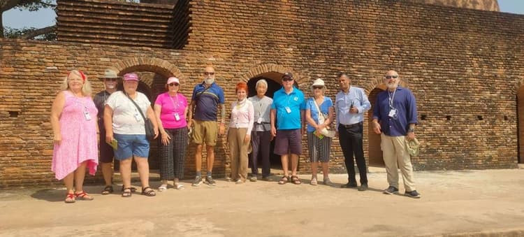 राजमहल/मंगलहाट. प्रखंड क्षेत्र के मंगलहाट स्थित ऐतिहासिक धरोहर जामा मस्जिद व बाराद्वारी का भ्रमण बुधवार को टूरिस्ट गाइड विनय जायसवाल के नेतृत्व में सात देशों के 13 विदेशी पर्यटकों ने किया. खूबसूरत दृश्यों को कैमरे में कैद किया. विनय जायसवाल ने बताया कि आस्ट्रेलिया से पांच, न्यूजीलैंड से दो, इजराइल से दो, स्पेन से एक, जापान से एक, अमेरिका से एक, स्वीट्जरलैंड से एक विदेशी पर्यटक पटना से गंगा के रास्ते कोलकाता जाने के दौरान आयें हैं.