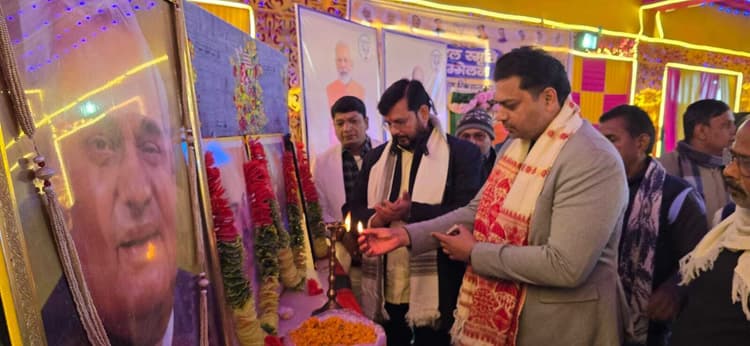 देश के पूर्व प्रधानमंत्री और भारत रत्न अटल बिहारी वाजपेयी की जयंती के अवसर पर भाजपा द्वारा आयोजित कार्यक्रमों की श्रृंखला के तहत बुधवार को साहिबगंज शहर के बैंक्वेट हॉल में अटल स्मृति सम्मेलन का भव्य आयोजन किया गया. कार्यक्रम में गोड्डा के पूर्व विधायक अमित मंडल मुख्य वक्ता के रूप में उपस्थित रहे, जबकि राजमहल के पूर्व विधायक एवं भाजपा के वरिष्ठ नेता अनंत ओझा विशिष्ट वक्ता के रूप में शामिल हुए. कार्यक्रम का संचालन जिला महामंत्री और कार्यक्रम संयोजक गौतम यादव ने किया, जबकि धन्यवाद ज्ञापन जिला उपाध्यक्ष रामानंद साह ने प्रस्तुत किया. सम्मेलन में प्रदेश कार्यसमिति सदस्य गणेश तिवारी और बमबम मंडल ने भी अपने विचार व्यक्त किये. मंच पर पूर्व जिला अध्यक्ष रामदरश यादव, प्रदेश कार्यसमिति सदस्य धर्मेंद्र कुमार और नगर अध्यक्ष विनोद चौधरी उपस्थित रहे. इस अवसर पर सभी वरिष्ठ कार्यकर्ताओं और अतिथियों को अंगवस्त्र देकर सम्मानित भी किया गया. कार्यक्रम में अपने संबोधन में पूर्व विधायक अनंत ओझा ने कहा कि अटल बिहारी वाजपेयी ने राष्ट्रप्रथम भाव के साथ अपना संपूर्ण जीवन देशसेवा में समर्पित किया. उनके प्रधानमंत्री कार्यकाल में ग्रामीण सड़कों से लेकर फोरलेन हाइवे तक आधारभूत संरचना का अभूतपूर्व विकास हुआ. उन्होंने युवाओं से राष्ट्र निर्माण में सक्रिय भूमिका निभाने और लोकतंत्र, संवैधानिक मूल्यों की रक्षा तथा जनसेवा को राजनीति का मूल उद्देश्य बनाने का आह्वान किया. मुख्य वक्ता अमित मंडल ने कहा कि भारत रत्न अटल बिहारी वाजपेयी ने अपने दूरदर्शी नेतृत्व से देश को विकास की नयी दिशा दी. स्वर्णिम चतुर्भुज जैसी योजनाओं से सड़क, संचार एवं आधारभूत संरचना को गति मिली. पोखरण परमाणु परीक्षण के माध्यम से उन्होंने भारत को वैश्विक मंच पर सशक्त राष्ट्र के रूप में स्थापित किया. उन्होंने बताया कि अटल जी का जीवन राष्ट्रसेवा, विकास और प्रेरणा का अमर अध्याय है. सम्मेलन में पार्टी के जिला पदाधिकारी मंटा मंडल, अनिमेष सिन्हा, संजय पटेल, गरिमा साह, जयकांत वर्मा सहित सभी वर्तमान, निवर्तमान और पूर्व मंडल अध्यक्ष तथा बड़ी संख्या में कार्यकर्ता उपस्थित थे.
