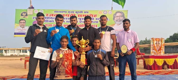 साहिबगंज. पलामू के पिपरा में 26 से 29 नवंबर तक आयोजित 25वीं सीनियर झारखंड पुरुष फ्री स्टाइल, ग्रीको रोमन व महिला फ्री स्टाइल कुश्ती प्रतियोगिता के पुरुष फ्री स्टाइल वर्ग में साहिबगंज जिला टीम बनी उपविजेता, जहां जिले के खिलाड़ियों ने शानदार प्रदर्शन करते हुए तीन स्वर्ण, दो रजत और दो कांस्य पदक जीते. इसमें सिदो कान्हू स्टेडियम में संचालित खेलो इंडिया कुश्ती सेंटर के खिलाड़ियों का महत्वपूर्ण योगदान रहा. पदक विजेता खिलाड़ी पुरुष फ्रीस्टाइल 45 किलो वर्ग में करण कुमार स्वर्ण, 79 किलो वर्ग में मनीष यादव को स्वर्ण, 97 किलो वर्ग में सुशांत सौरभ को स्वर्ण पदक, 70 किलो वर्ग राजीव यादव, रजत पदक 51 किलो वर्ग अंकुश यादव कांस्य पदक, ग्रीको रोमन 72 किलो वर्ग में अंगद यादव को रजत पदक, 63 किलो वर्ग सोनू यादव को कांस्य पदक, विजेता टीम के खिलाड़ियों को डीसी हेमंत सती, जिला खेल पदाधिकारी पंकज कुमार झा, जिला कुश्ती संघ की नमिता कुमारी, रमेश कुमार, गौरव झा, निमाई चौधरी ने खेलो इंडिया कुश्ती सेंटर साहिबगंज के कोच प्रकाश सिंह बादल, राजेश यादव, माधव चंद्र घोष समेत विजेता खिलाड़ियों को बधाई व शुभकामना दी.