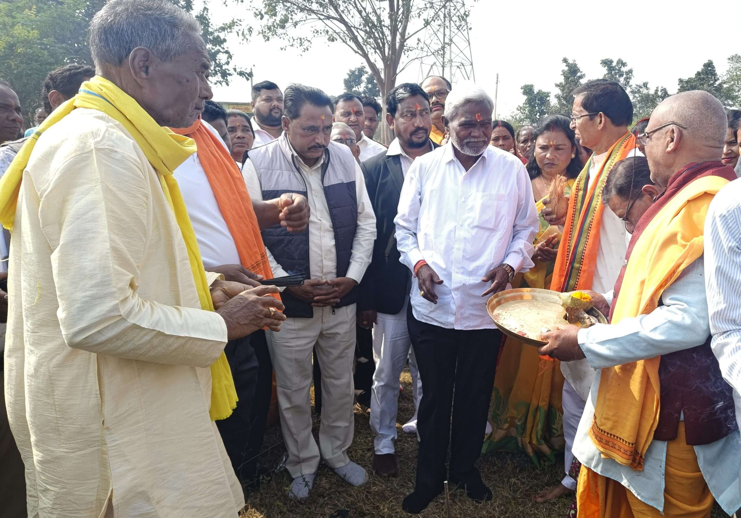 सरायकेला. सरायकेला के जगन्नाथपुर स्थित रांगाटांड़ मैदान में भगवान श्री कृष्ण का मंदिर बनेगा. पूर्व मुख्यमंत्री चंपाई सोरेन समेत समिति के पदाधिकारियों ने मंदिर निर्माण को लेकर गुरुवार को भूमि पूजन किया. पुरोहित पं रामनाथ होता ने वैदिक मंत्रोच्चार के साथ पूजा-अर्चना करायी. पूर्व सीएम चंपाई सोरेन ने कहा कि जगन्नाथपुर में भगवान श्रीकृष्ण का मंदिर निर्धारित समय सीमा में पूरा होगा. कहा कि वह भी भगवान श्रीकृष्ण के उपासक हैं. भगवान श्रीकृष्ण ने मानव समाज को सद्कर्म करने की शिक्षा दी है. इस संसार में कोई भी मनुष्य अमर नहीं है, सिर्फ उसका कर्म अजर अमर है. उन्होंने पूर्व में भी दर्जनों मंदिरों के निर्माण में सहयोग किया है. इस मंदिर के निर्माण में भी सहयोग करेंगे.