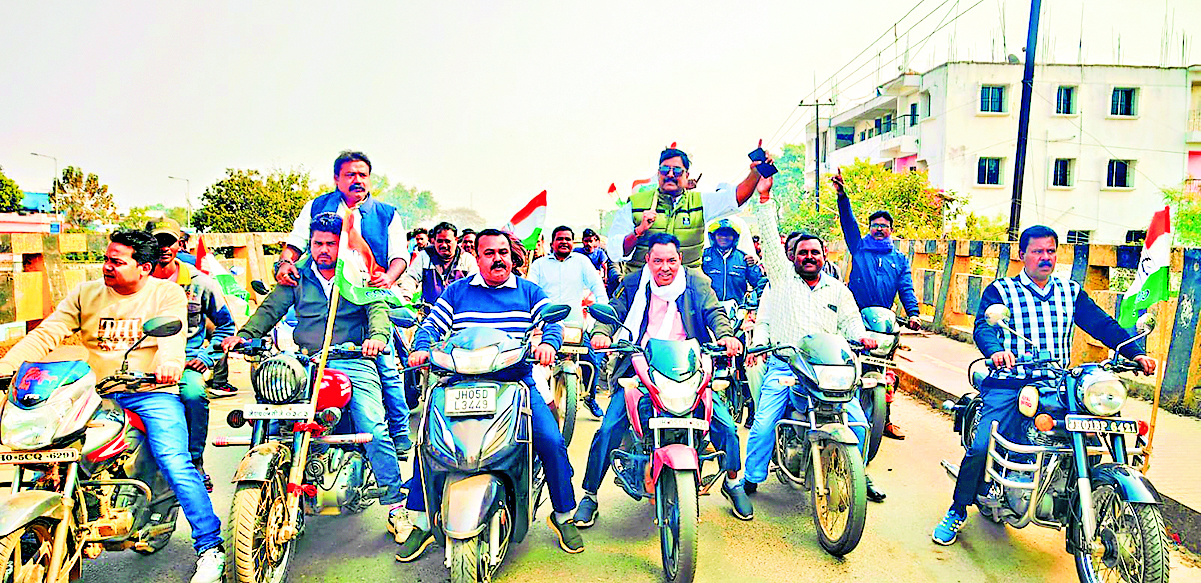 कांग्रेस के 140वें स्थापना दिवस पर रविवार को घाटशिला में अनुमंडल स्तरीय बाइक रैली निकाली गयी. इसकी शुरुआत फूलडुंगरी बस स्टैंड से हुई, जो काशिदा, राजस्टेट होते हुए मुख्य सड़क मार्ग से दाहीगोड़ा सर्कस मैदान पहुंची. यहां पूर्व प्रधानमंत्री इंदिरा गांधी, राजीव गांधी, नेताजी सुभाष चंद्र बोस व शहीद दिलीप बेसरा की प्रतिमाओं पर माल्यार्पण कर श्रद्धांजलि अर्पित की. दाहीगोड़ा सर्कस मैदान में सभा हुई. मौके पर वरिष्ठ कांग्रेसी पूर्णेंदु सिंह, नटवर पाल, पूर्वी सिंहभूम युवा कांग्रेस के नवनिर्वाचित जिला महासचिव शिवाजी चटर्जी, प्रखंड अध्यक्ष सुब्रतो पाल, महासचिव राहुल नाथ, पीयूष मंडल व प्रखंड उपाध्यक्ष कमलेश पाल को अंगवस्त्र देकर सम्मानित किया गया. कांग्रेस के प्रदेश सचिव तापस चटर्जी ने कहा कि कांग्रेस की विचारधारा देश की एकता, सामाजिक न्याय और संविधान की रक्षा के लिए प्रतिबद्ध है. मौके पर घाटशिला प्रखंड कार्यकारी अध्यक्ष मानस दास, मंडल अध्यक्ष कन्हैया शर्मा, नरेश महाकुड़, समीर मदीना, लक्ष्मण चंद्र बाग, शेख फारूक, बिमल बारीक, सत्यवान बेरा, अर्णव नायक, जिला सचिव सुराई मार्डी, आनंद सेनापति, वरिष्ठ कांग्रेसी निखिल करण, सतदल गिरी, अशोक मदीना, सपन दत्ता, संजय साह, सुभाष सिंह, मो इब्राहिम, बबलू नायक, होनो बारीक, मुकुंद सीट आदि उपस्थित थे.
