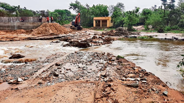 राजनगर-जुगसलाई मुख्य मार्ग के बोंगबोंगा नदी पर निर्माणाधीन पुलिया का डायवर्सन गुरुवार की शाम तेज बारिश में बह गया, जिससे क्षेत्र में आवागमन पूरी तरह बाधित हो गया है. इस डायवर्सन के टूटने से अब चार पहिया वाहनों की आवाजाही ठप हो गयी है. हालांकि दो पहिया वाहन अभी भी पुरानी पुलिया के सहारे आर-पार हो रहे हैं, क्योंकि भारी वाहनों को रोकने के लिए पुलिया के पास दीवार खड़ी कर दी गयी है. मालूम हो कि बीते पांच दिनों से प्रखंड क्षेत्र में प्रतिदिन शाम जोरदार बारिश हो रही है, जिससे नालों का भी जलस्तर बढ़ गया है. इसी कारण बोंगबोंगा नदी में बना डायवर्सन टूट गया.पिछले वर्ष अक्तूबर में पुरानी पुलिया हो गयी थी ध्वस्त विदित हो कि पिछले वर्ष अक्तूबर में भी बोंगबोंगा नदी पर बनी पुरानी पुलिया ध्वस्त हो गयी थी. इसी क्रम में गिट्टी लदा एक हाइवा फंस गया था. वाहन को निकालने के बाद पुलिया पूरी तरह से टूट गयी, जिससे आवागमन ठप हो गया था. उस समय लोगों को टाटा जाने के लिए 5 किलोमीटर अतिरिक्त दूरी तय करनी पड़ रही थी. इसके बाद स्थानीय लोगों की मांग पर पुलिया निर्माण कार्य शुरू हुआ और संवेदक द्वारा एक अस्थायी डायवर्सन बनाया गया, जिससे आवागमन फिर से शुरू हो सका.डिस्क्लेमर: यह प्रभात खबर समाचार पत्र की ऑटोमेटेड न्यूज फीड है. इसे प्रभात खबर डॉट कॉम की टीम ने संपादित नहीं किया है