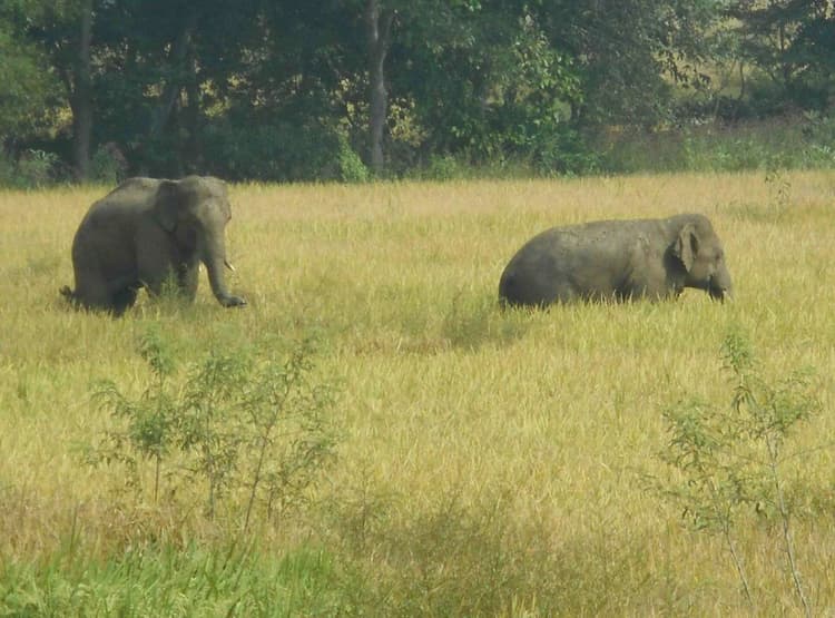 धान की कटाई का कार्य शुरू होते ही खरसावां वन क्षेत्र के गांवों में जंगली हाथियों ने दस्तक दे दी है. रविवार की रात करीब एक दर्जन जंगली हाथी रामपुर के जंगल में पहुंच गये हैं. रविवार की रात जंगली हाथियों ने रामपुर गांव के छूटनु महतो, रोहिना महतो व दुर्गा बोईपाई के खेत में पहुंच कर धान की फसल को खाने के साथ रौंद कर बर्बाद कर दिया. सोमवार को अहले सुबह पास के जंगल में चले गये. हाथियो के झुंड में दो दंतैल हाथी भी है. किसानों ने सोमवार को खरसावां के वन विभाग स्थित कार्यालय पहुंच कर हाथियों द्वारा धान की फसल बर्बाद किये जाने की जानकारी दी. साथ ही विभाग से मुआवजा भी मांगा. मालूम हो कि खरसावां में करीब दो साल बाद जंगली हाथियों का झुंड पहुंचा है. जंगली हाथियों के खरसावां आने की सूचना से किसान भयभीत हैं. किसानों ने वन विभाग से जंगली हाथियों को खदेड़ने की मांग की है.डिस्क्लेमर: यह प्रभात खबर समाचार पत्र की ऑटोमेटेड न्यूज फीड है. इसे प्रभात खबर डॉट कॉम की टीम ने संपादित नहीं किया है