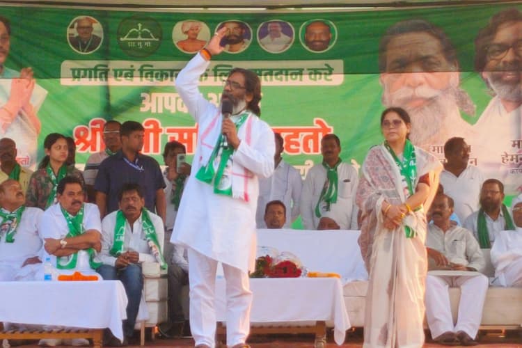 हेमंत सोरेन ने कहा कि हमारी सरकार में अफसर पंचायतों में जाकर काम कर रहे हैं. आने वाले समय में राशन कार्ड, जाति प्रमाण पत्र, आवासीय प्रमाण पत्र आदि कार्य अफसर घर-घर जाकर करेंगे. गांव मजबूत होगा, तो प्रखंड और फिर राज्य मजबूत होगा. हमारी सरकार बनी, तो हर गरीब को सालाना एक लाख रुपये देंगे. आगामी पांच साल में हमारे लोगों को इतना मजबूत करेंगे कि झारखंड में मामा, चाचा, काका किसी को घुसने नहीं देंगे. मुख्यमंत्री ने कहा कि झूठे आरोप लगाकर मुझे जेल भेजा गया. भाजपा की नजर झारखंड की खनिज संपदा लूटने पर है. झारखंड वीरों की धरती है. यहां के लोग डरते नहीं, डराते हैं. झामुमो शहीद निर्मल महतो, दिशोम गुरु शिबू सोरेन की पार्टी है, जो बोलते हैं वह करके दिखाते हैं.