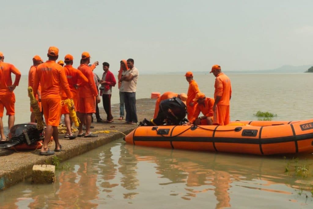 चांडिल डैम में लापता विमान की तलाश कर रही एनडीआरएफ की टीम. फोटो : प्रभात खबर