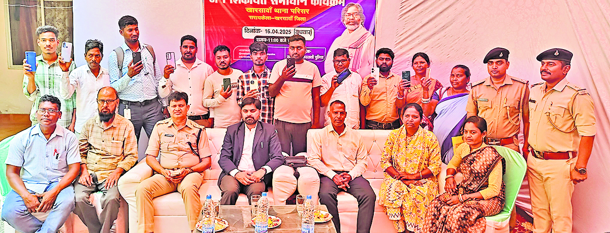 खरसावां थाना परिसर में बुधवार को जन शिकायत समाधान कार्यक्रम का आयोजन किया गया. मौके पर डीएलएसए सचिव तौसिफ मिराज ने कहा कि कार्यक्रम के जरिये लोगों की शिकायतों का समाधान किया जा रहा है. उन्होंने डालसा की ओर से दी जा रही विधिक सहायता की जानकारी दी. डीएसपी (मुख्यालय) प्रदीप उरांव ने कहा कि कार्यक्रम का मुख्य उद्देश्य पुलिस-पब्लिक के बीच मैत्रीपूर्ण वातावरण स्थापित कर शिकायतों का निष्पादित करना है.ग्रामीण बोले- पुलिस के प्रति सम्मान बढ़ा