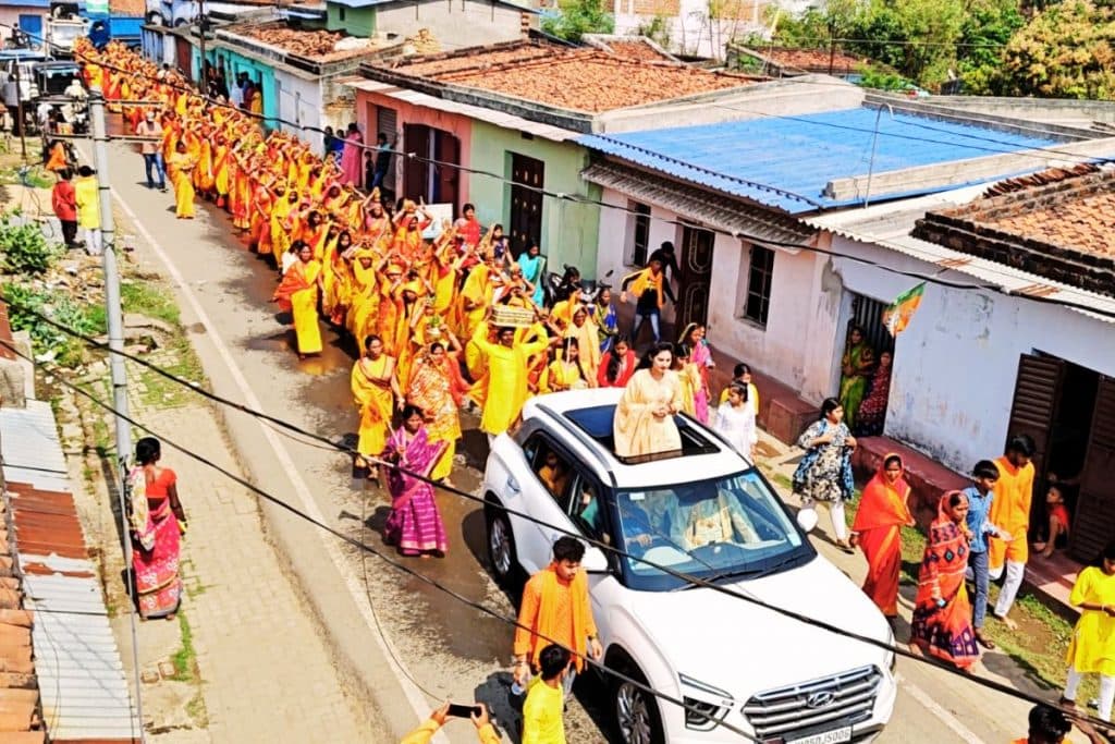 इस दौरान श्रद्धालु रामचरितमानस ग्रंथ को माथे पर लेकर चलते रहे. इस दौरान जय श्रीराम के जयकारे लगाये गये. कलश यात्रा के सामने खुली कार में कथा वाचिका दीदी दिव्यांशी लोगों का अभिवादन कर रहीं थीं. पारंपरिक वाद्य यंत्र और मंगलध्वनि गूंज रहे थे. इससे पूरा वातावरण भक्तिमय हो उठा.