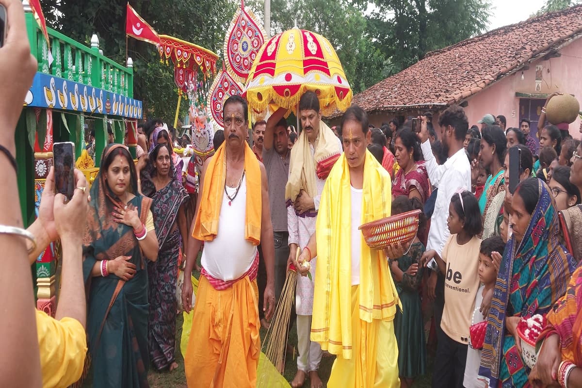 छेरा पोहरा की रस्म अदायगी के बाद चतुर्था मूर्ति (प्रभु जगन्नाथ, बड़े भाई बलभद्र, देवी सुभद्रा व सुदर्शन) को मंदिर के पुरोहित प्रदीप कुमार दाश व भरत त्रिपाठी की अगुवाई में पोहंडी (झूलाते हुए) करते हुए रथ तक ले जाया गया. इसके पश्चात भक्तों ने रथ को खींचते हुए श्रीमंदिर से श्रीगुंडिचा मंदिर तक पहुंचाया. गुंडिचा मंदिर पहुंचने पर चतुर्था मूर्ति का आरती उतारी गयी तथा भोग लगाया गया. इस दौरान मुख्य रुप से गांव के जमीनदार विद्या विनोद सिंहदेव, संजय सिंहदेव, राजेशष सिंहदेव, पृथ्वीराज सिंहदेव, राणा सिंहदेव आदि मौजूद रहे.