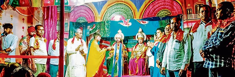 सरायकेला प्रखंड अंतर्गत जगन्नाथपुर गांव में उत्तरप्रदेश के प्रयागराज से पधारे गौ रक्षा एवं रामकथा प्रचार प्रसार मंडली की ओर से सात दिवसीय रामलीला का आयोजन किया जा रहा है. रामलीला का शुभारंभ मंगलवार को हुआ. रामलीला कार्यक्रम की प्रथम संध्या पर प्रयागराज से पधारे कलाकारों ने तड़का वध कथा का मंचन किया. इसके साथ कलाकारों ने बहुत ही मनोरम ढंग से महर्षि विश्वामित्र का यज्ञ करना, राक्षसों द्वारा यज्ञ का विध्वंस करना, महर्षि का दिव्य दृष्टि से भगवान नारायण के रामावतार को देखना, विश्वामित्र का अयोध्या पहुंचना, गुरु वशिष्ठ जी के समझाने पर राजा दशरथ द्वारा राम-लक्ष्मण को विश्वामित्र जी को सौंपना, तारक वन में भगवान द्वारा राक्षसी ताड़का-सुबाहु का वध, राक्षस मारीच को बिना फल के बाण मारकर लंका भेजना, महर्षि विश्वामित्र का यज्ञ पूर्ण कराने की कथा का नाटक के माध्यम से मंचन किया.रामलीला देखने पहुंचे लोग