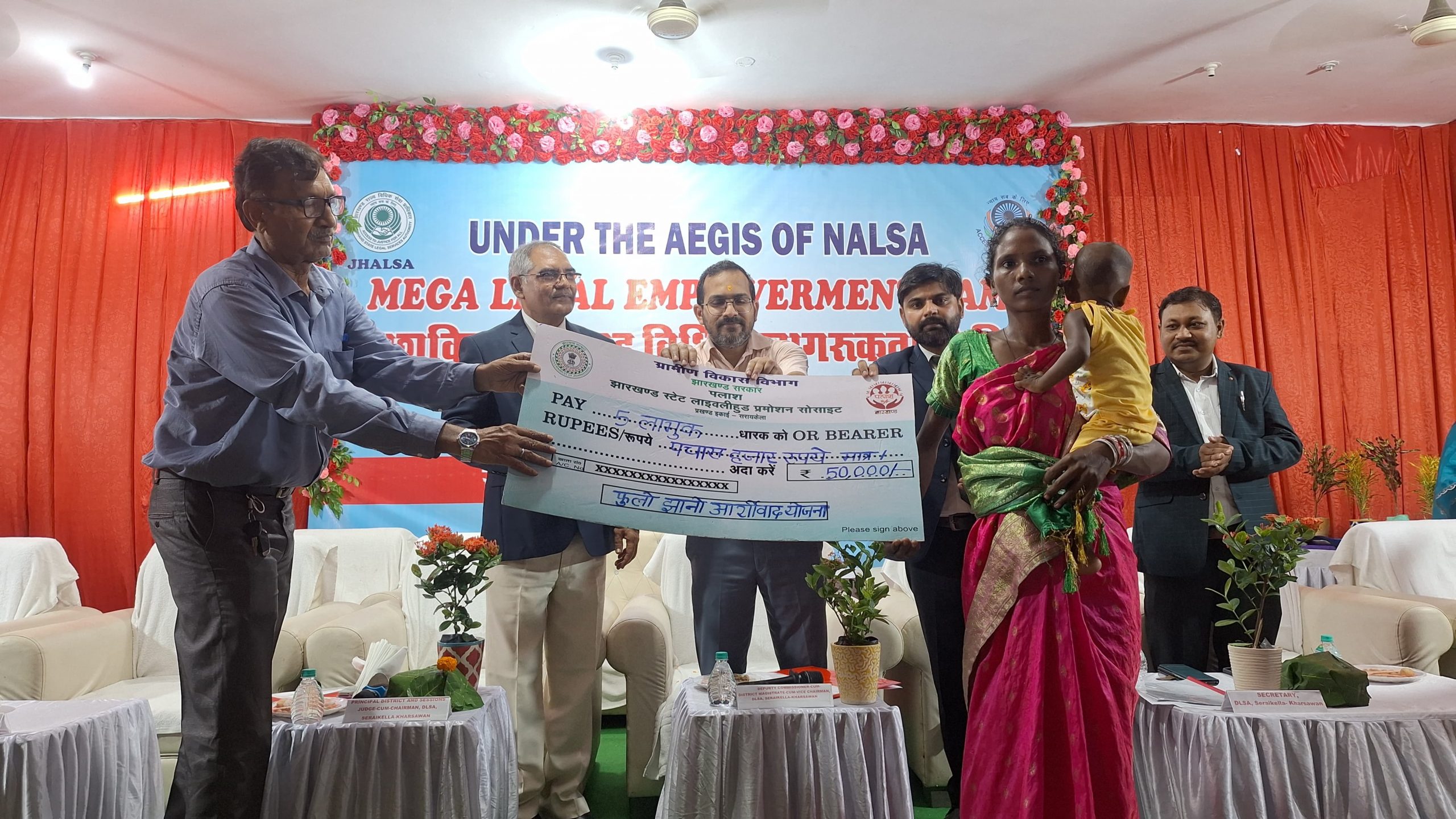 सरायकेला. सरायकेला सामुदायिक भवन में रविवार को मेगा विधिक सशक्तीकरण सह परिसंपत्ति वितरण शिविर का आयोजन किया गया. जिला विधिक सेवा प्राधिकार ( डिस्ट्रिक्ट लीगल सर्विसेज अथॉरिटी) डलसा के तहत शिविर में 66 लाभुकों के बीच 86.07 लाख की परिसंपत्तियों का वितरण किया गया. कार्यक्रम का शुभारंभ पीडीजे रमाशंकर सिंह, डीसी नितिश कुमार व एसपी मुकेश कुमार लुणायत ने संयुक्त रूप से किया गया. सरकार द्वारा संचालित योजनाओं के बारे में बताया गया. पीडीजे रमाशंकर सिंह ने कहा कि आम नागरिक डीएलएसए से निःशुल्क विधिक सहायता प्राप्त कर सकते हैं. साथ ही सरकारी योजनाओं के लाभ के लिए भी आवेदन कर सकते हैं. समाज के अंतिम व्यक्ति तक न्याय पहुंचाने में ऐसे शिविरों की अहम भूमिका है. शिविर में 819 लाभुकों के बीच 87.21 करोड़ की परिसंपत्ति का वितरण किया गया.