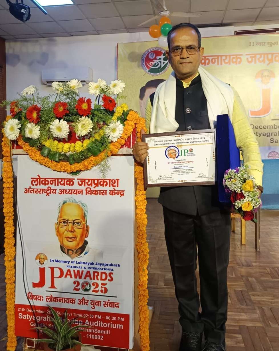 खरसावां. शिक्षा के क्षेत्र में उल्लेखनीय योगदान के लिए लोक नायक जयप्रकाश अंतरराष्ट्रीय अध्ययन एवं विकास केंद्र की ओर से संस्कृत शिक्षक विश्व रंजन त्रिपाठी को “जेपी नेशनल अवाॅर्ड” से सम्मानित किया गया. सम्मान समारोह नयी दिल्ली स्थित राजघाट के गांधी स्मृति एवं दर्शन समिति के सत्याग्रह मंडप में आयोजित किया गया. इस अवसर पर गांधी स्मृति एवं दर्शन समिति के उपाध्यक्ष व पूर्व केंद्रीय मंत्री विजय गोयल, जीएसटी एवं सीमा शुल्क विभाग के पूर्व प्रधान आयुक्त डॉ. अनूप श्रीवास्तव, संस्थान के महासचिव अभय सिन्हा, अखिल भारतीय हिंदू महासभा के अध्यक्ष स्वामी चक्रपाणि महाराज, पर्यावरणविद् ज्ञानेंद्र रावत, और वरिष्ठ पत्रकार सुधांशु रंजन ने संयुक्त रूप से प्रशस्ति पत्र व शील्ड देकर पुरस्कृत किया. सम्मान ग्रहण करने के बाद शिक्षक विश्व रंजन त्रिपाठी ने कहा कि यह सम्मान संस्कृत भाषा और शिक्षा के प्रति समर्पित सभी शिक्षकों के लिए प्रेरणा का स्रोत है. उन्होंने कहा कि मैं आजीवन शिक्षा के क्षेत्र में कार्यरत रहूंगा और संस्कृत भाषा के प्रचार-प्रसार के लिए प्रयास जारी रखूंगा.