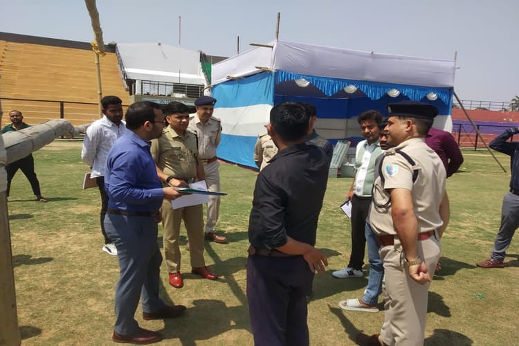 परीक्षा की तैयारियों की समीक्षा के लिए शुक्रवार को उपायुक्त नितिश कुमार सिंह और पुलिस अधीक्षक मुकेश लुणायत ने बिरसा मुंडा स्टेडियम का निरीक्षण किया. इस दौरान दोनों अधिकारियों ने मैदान में की जा रही व्यवस्थाओं का जायजा लिया और संबंधित अधिकारियों को आवश्यक दिशा-निर्देश दिए. निरीक्षण के दौरान डीसी और एसपी ने अधिकारियों से कहा कि सभी व्यवस्थाएं अभ्यर्थियों की सुविधा को ध्यान में रखते हुए समय पर पूरी कर ली जाएं, ताकि परीक्षा के दिन किसी भी प्रकार की परेशानी न हो.