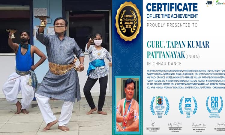 विश्व के 110 देशों में कोविड-19 को लेकर जागरूकता कार्यक्रम चला रहे 3 संस्था बतायान इंटरनेशनल पोएट्री फेस्टिवल 2020 (Batayan International Poetry Festival 2020), टूरिज्म इंटरनेशनल फिल्म फेस्टिवल 2020 (Tourism International Film Festival 2020) एवं कोविड-19 इंटरनेशनल ट्राइबल फिल्म फेस्टिवल 2020 (Covid-19 International Tribal Film Festival 2020) द्वारा संयुक्त रुप से छऊ नृत्य गुरु तपन कुमार पटनायक को प्राईड ऑफ ऑवर इंडिया से सम्मानित किया गया. गांधी जयंती के शुभ अवसर पर ऑनलाइन वेबीनार (Online webinars) में गुरु तपन को संस्था द्वारा सर्टिफिकेट देकर सम्मानित किया गया. गुरु तपन पटनायक सरायकेला के राजकीय छऊ नृत्य कला केंद्र के निदेशक (Director of Government Chhau Dance Arts Center, Seraikela) हैं.