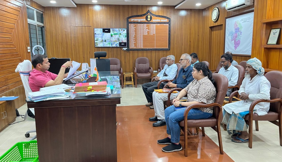 सरायकेला. समाहरणालय स्थित कार्यालय प्रकोष्ठ में डीसी रविशंकर शुक्ला की अध्यक्षता में साप्ताहिक जनता दरबार का आयोजन किया गया. जनता दरबार में जिले के विभिन्न क्षेत्र से व्यक्तिगत व सामाजिक समस्याओं के निराकरण के लिए आये लोगों से मिलकर उनकी समस्याओं से अवगत हुए. डीसी ने संबंधित पदाधिकारियों को प्राथमिकता के आधार पर निष्पादन करने का निर्देश दिया. योग्य लाभुकों को सरकार की कल्याणकारी योजनाओं से जोड़ने का निर्देश दिया. जनता दरबार में भूमि सम्बन्धित मामले (आपसी बंटवारा, सीमांकन, पंजी-2 में नाम दर्ज करने) मुख्यमंत्री मंईयां सम्मान योजना का लाभ ना मिलने, गौरांगडीह मे स्माइल नशामुक्त के नाम से अवैध संस्थान का संचालन करने तथा कार्यालय में कार्य करने वाले कर्मियों का लंबित वेतन भुगतान नहीं करने, गंजियाघाट-गोविन्दपर, गम्हरिया पथ निर्माण में अधिग्रहीत भूमि का मूल्यांकन के आधार पर लंबित राशि का भुगतान करने, बदलते मौसम को ध्यान में रखकर विभिन्न पंचायतों में खराब पड़े चापाकलों की मरम्मत कराने सहित अन्य आवेदन प्राप्त हुए. डीसी ने प्राप्त आवेदनों में कई मामलों का ऑन-द-स्पॉट निराकरण किया गया.