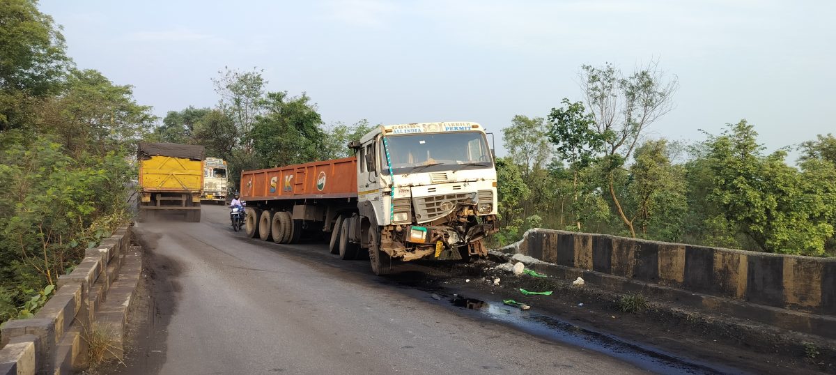 Seraikela News : तेज रफ्तार ट्रेलर पुलिया के गार्डवाल से टकराया, एक घंटा आवागमन बाधित
