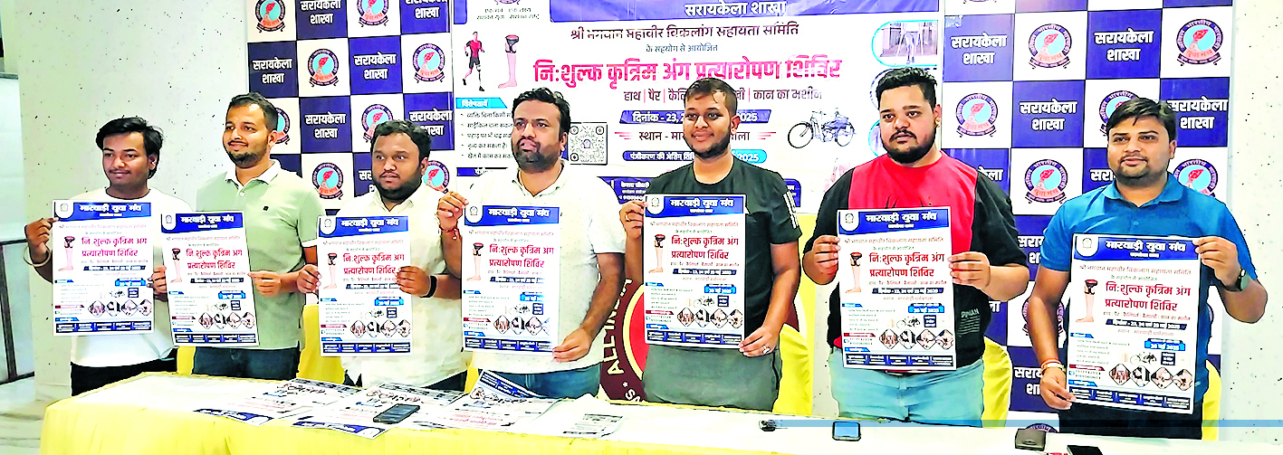 सरायकेला. सरायकेला के अग्रसेन भवन (मारवाड़ी धर्मशाला) में 23 से 25 मई तक मारवाड़ी युवा मंच व श्री भगवान महावीर विकलांग सहायता समिति की ओर से निःशुल्क कृत्रिम अंग प्रत्यारोपण शिविर का आयोजन किया गया है. शिविर में दिव्यांगजनों को कृत्रिम अंग का प्रत्यारोपण किया जाएगा. कार्यक्रम के सफल आयोजन को लेकर मायुमं की ओर से रविवार को सरायकेला के रानी सती दादी मंदिर सभागार में प्रेस कॉन्फ्रेंस का आयोजन किया गया. शाखा सचिव आशुतोष चौधरी ने बताया कि मारवाड़ी युवा मंच अपने सामाजिक दायित्व के तहत रांची की संस्था श्री भगवान महावीर विकलांग सहायता समिति के सहयोग से शिविर लगाकर दिव्यांगजनों के लिए निःशुल्क कृत्रिम अंग उपलब्ध करायेगा. शिविर में सुनने की मशीन, बैसाखी और ट्राइसाइकिल दी जायेगी.