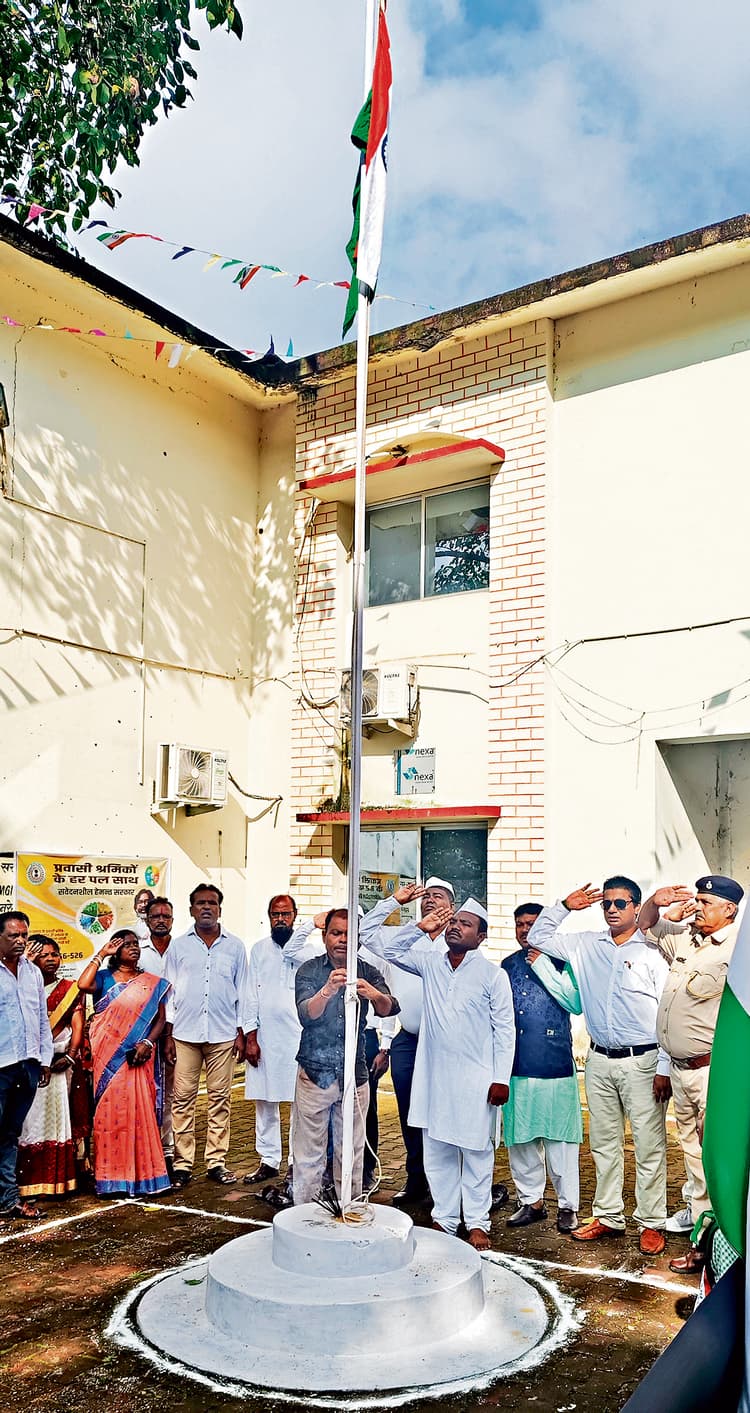 खरसावां के विभिन्न सरकारी, गैर सरकारी प्रतिष्ठानों में राष्ट्रीय ध्वज फहराया गया. प्रखंड मुख्यालय प्रमुख मनेंद्र जामुदा, खादी पार्क व छऊ नृत्य कला केन्द्र खरसावां में बीडीओ प्रधान मांझी, अग्र परियोजना कार्यालय खरसावां में पीपीओ नीतीश कुमार, बीआरसी में बीइइओ नवल किशोर सिंह, वन विभाग के कार्यालय में वन पदाधिकारी शशि प्रकाश रंजन, थाना में थाना प्रभारी गौरव कुमार, आमदा ओपी में ओपी प्रभारी रमन विश्वकर्मा, आदर्श मध्य विद्यालय खरसावां में प्राचार्य माजिद खान, सीएचसी में प्रभारी चिकित्सा प्रभारी डॉ वीरांगना सिंकु, डीएसए के कार्यालय में उपाध्यक्ष छोटराय किस्कु, झामुमो कार्यालय खरसावां में विधायक दशरथ गागराई राष्ट्रीय ध्वज फहराते हुए तिरंगा को सलामी दी गयी. विभिन्न स्कूल कॉलेजों में भी झंडा फहराया गया. दूसरी ओर, कुचाई प्रखंड के विभिन्न क्षेत्रों में स्वतंत्रता दिवस पर ध्वजारोहण कर तिरंगे को सलामी दी गयी. प्रखंड कार्यालय में गुड्डी देवी ने ध्वजारोहण किया.डिस्क्लेमर: यह प्रभात खबर समाचार पत्र की ऑटोमेटेड न्यूज फीड है. इसे प्रभात खबर डॉट कॉम की टीम ने संपादित नहीं किया है