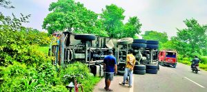 हाता-चाईबासा मार्ग (एनएच-220) स्थित विद्युत सब-स्टेशन के समीप बुधवार की सुबह 11.30 बजे कोयला लदा ट्रक अनियंत्रित होकर पलट गया.