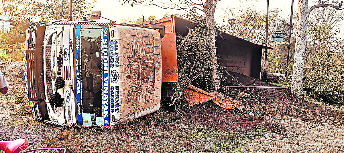 राजनगर-सरायकेला मार्ग पर तेज रफ्तार ट्रेलर अनियंत्रित होकर पलट गया. राजनगर. राजनगर-सरायकेला मुख्य मार्ग के सारंगपोसी गांव के तीखा मोड़ पर लौह अयस्क लदा ट्रेलर अनियंत्रित होकर पलट गया. हादसे में चालक बाल-बाल बच गया. घटना मंगलवार की सुबह की है. जानकारी के मुताबिक, सरायकेला जा रहे लौह अयस्क लदा ट्रेलर (जेएच 05 डीवी 9660) जैसे ही सारंगपोसी गांव के तीखा मोड़ पहुंचा, तो विपरीत दिशा से आ रहे हाइवा से सीधी टक्कर होते-होते बच गया. इसके बाद ट्रेलर अनियंत्रित होकर सड़क किनारे खेत में पलट गया. यदि दोनों वाहनों में सीधी टक्कर होती तो बड़ी घटना घट सकती थी.