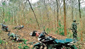 पुलिस भारी पड़ी तो भागे उग्रवादी, पांच बाइक, राइफल बरामद