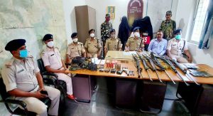 गिरफ्तार नक्सलियों के पास से पुलिस ने .315 बोर की रायफल, .315 की 17 कारतूस, 7 मैगजीन, एक पिस्टल, एक दो नाली बंदूक, दो नाली बंदूक के 8 कारतूस, 7.62 गुना 25 बोर के 30 कारतूस, 3 वायरलेस सेट, एक वॉकी-टॉकी, 8 मोबाइल फोन, 2 सिम कार्ड, एक चार्जर, 3 पावर बैंक, 50 हजार रुपये नकद, एक मैगजीन पाउच, एक बैग, PLFI का पर्चा और रसीद पैड बरामद की है.