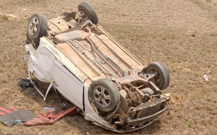 अनियंत्रित होकर कार सड़क के नीचे खेत में पलट गयी
