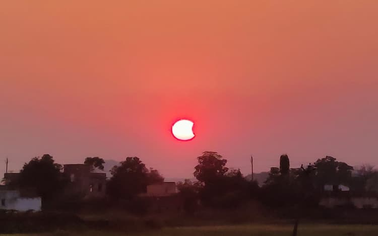 सिमडेगा शहर के सामटोली में सूर्य ग्रहण का शानदार नजारा देखने को मिला. सूर्य ग्रहण का सूतक लगने के बाद से सभी पूजा पंडालों एवं मंदिरों के पट को बंद कर दिया गया था. आज मंगलवार को मंदिरों एवं पूजा पंडालों में सुबह की पूजा नहीं हुई. शहरी क्षेत्र में गुलजार गली शिव मंदिर परिसर में मां लक्ष्मी एवं नीचे बाजार पूजा पंडाल में मां काली की पूजा प्रतिमा स्थापित कर की गई है