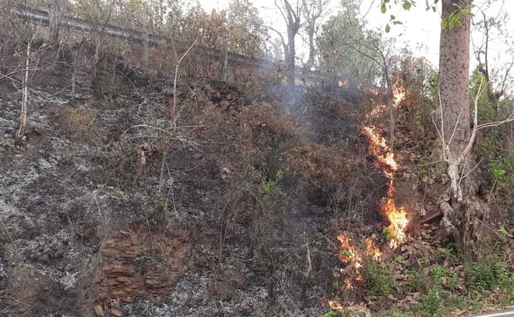 जंगल में लगी आग से सैकड़ों पेड़ जले